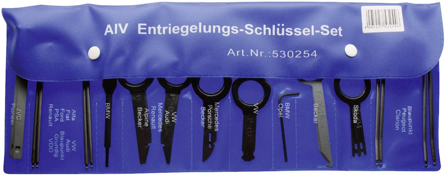 10 verschiedene Entriegelungsschlüssel für die meisten Kfz Modelle und Autoradios.