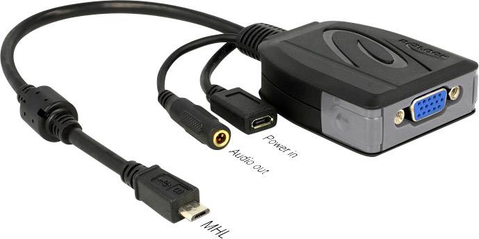 Mit diesem Adapter von Delock können Sie z. B. Ihr Smartphone mit Hilfe eines optionalen VGA Kabels an einen Monitor oder Projektor anschließen. Zusätzlich ist der Adapter mit einem Micro USB Anschluss versehen. Stecken Sie einfach das vorhandene Netzteil Ihres Smartphones oder Tablet PCs an die Micro USB Buchse, um z. B. Videos abspielen zu können und Ihr Mobilgerät gleichzeitig mit Strom zu versorgen. Der Klinkenanschluss dient zur Übertragung der Audiosignale.