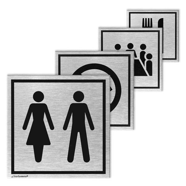 Die edlen Tello-Türschilder überzeugen durch Schlichtheit und Eleganz. Hochwertiges Aluminium mit schwarzen UV-Druck. Die Schilderserie zeichnet sich durch zwei verschiedene Formen in verschiedenen Größen aus. Piktogramme oder ein Text nach Wahl lassen die Tello-Schilder mit jeglicher Botschaft flexibel gestalten. Die mitgelieferten Klebepads befestigen die Piktogramme an nahezu allen Oberflächen. Material: Aluminium