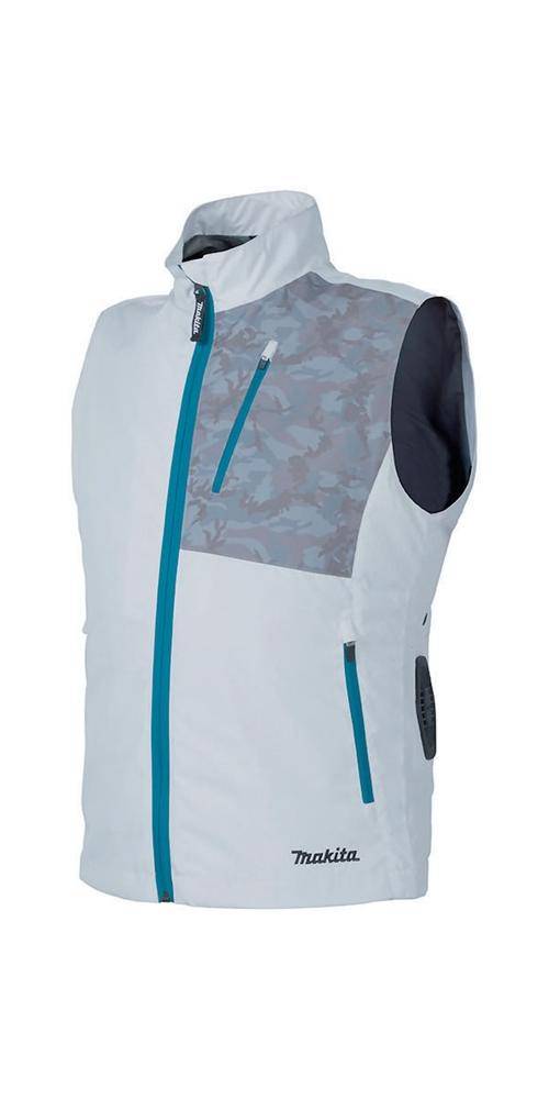 DFV210ZL Akku-Klimaweste Gr. LErhältlich in den Größen M · L · XL · 2XL · 3XL Zwei flache Lüfter mit BL-Motor für mehr Komfort Zum Herabkühlen der Körpertemperatur in heißer Umgebung Akku-Adapter muss zur Maschinenwäsche entnommen werden 3 Taschen: Brusttasche und Seitentaschen (rechts/links) mit Reißverschluss Mit Tunnelzug am SaumTechnische Details: Laufzeit mit BL1860B: bis 33 Std. Fördermenge ZollLowZoll: 1500 l/min Fördermenge ZollMediumZoll: 1700 l/min Fördermenge ZollHighZoll: 2100 l/min Turbo Modus: 2200 l/min Größe: M/L/XL/2XL/3XL Material Aussenstoff: 100% Polyester Akkuspannung: 18 V Gewicht (inkl. Akku): 0,6 kg Weitere technische Eigenschaften: · Farbe: mehrfarbig