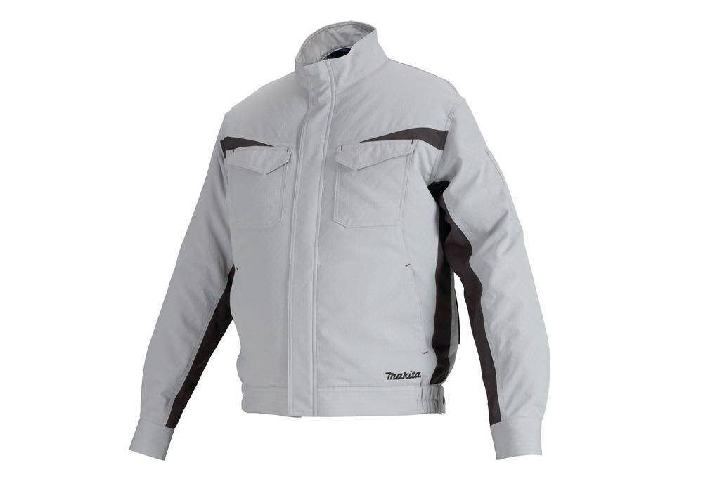 DFJ213ZXL Akku-Klimajacke Workwear Gr. XLErhältlich in den Größen M · L · XL · 2XL · 3XL Zwei flache Lüfter mit BL-Motor für mehr Komfort Zum Herabkühlen der Körpertemperatur in heißer Umgebung Luft wird durch einen Ventillator im Rückenbereich angesaugt · bläst über die Haut und tritt durch die Öffnungen im Hals- und Handbereich wieder aus Akku-Adapter muss zur Maschinenwäsche entnommen werden 5 Taschen: 2 Brusttaschen mit Reißverschluss · Seite rechts/links · linker Arm Luftstromregler mit 3 LED-AnzeigenTechnische Details: Laufzeit mit BL1860B: bis 33 Std. Fördermenge ZollLowZoll: 1500 l/min Fördermenge ZollMediumZoll: 1700 l/min Fördermenge ZollHighZoll: 2100 l/min Turbo Modus: 2200 l/min Größe: M/L/XL/2XL/3XL Material Aussenstoff: 100% Polyester Akkuspannung: 18 V Gewicht (inkl. Akku): 1,2 kg Weitere technische Eigenschaften: · Farbe: grau