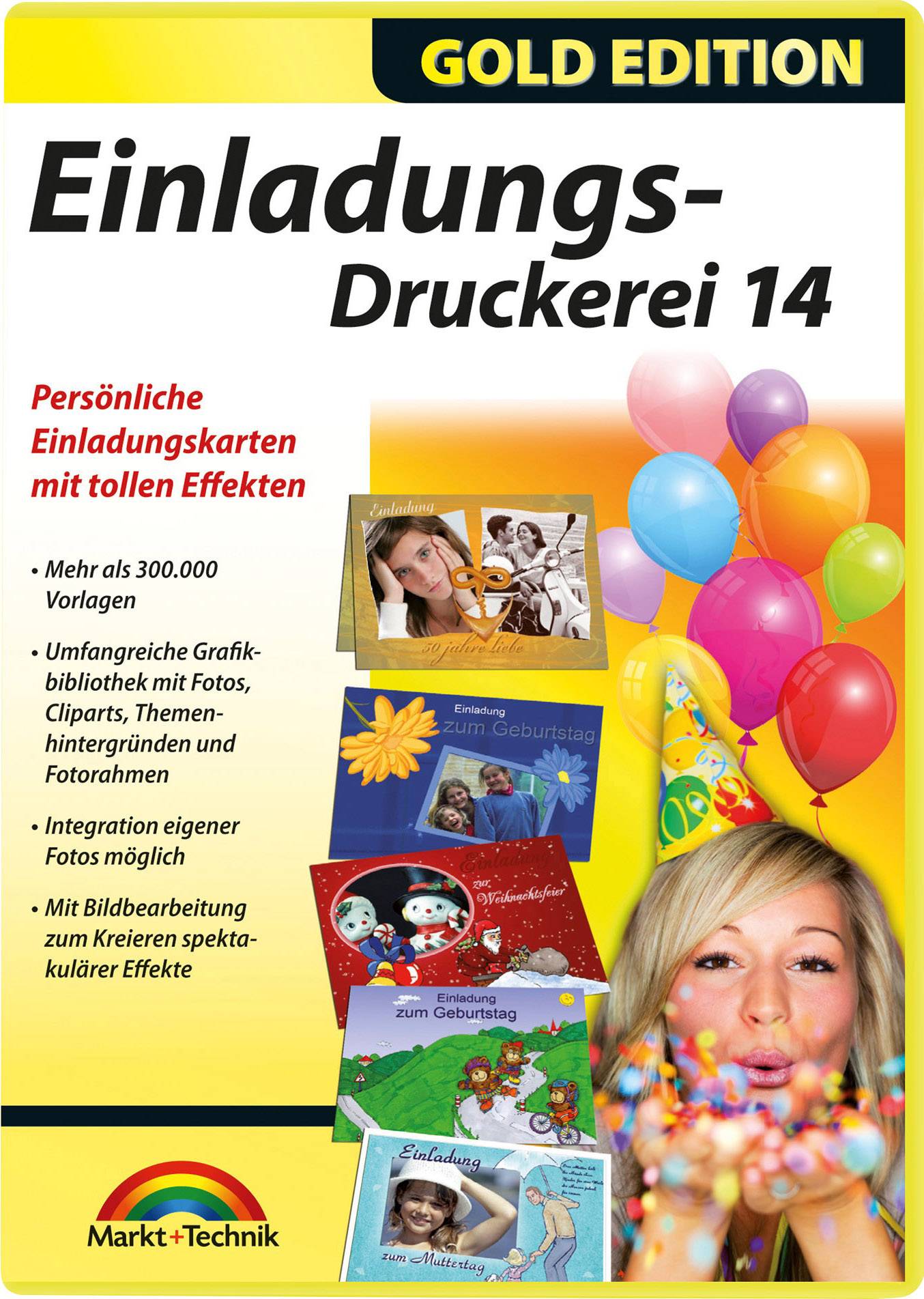 Markt & Technik Einladungs Druckerei 14 Gold Edition Vollversion, 1 Lizenz Windows Vorlagenpaket
