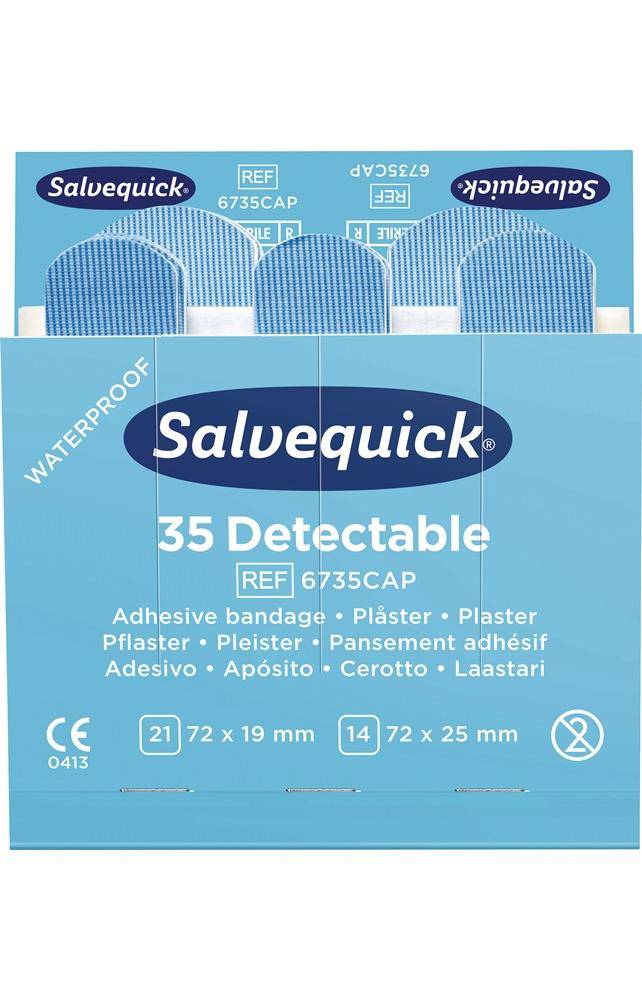 Nachfüllpackungen »Salvequick«Blue Detectable-Pflaster für die Lebensmittelindustrie, wasserabweisendAusführung: »51030127«Inhalt: 6 RefillsBeschreibung: Blue Detectable-Pflaster für die Lebensmittelindustrie, wasserabweisend