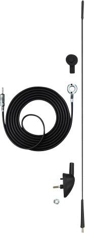Anschlüsse: DIN 150 Ohm auf Kabelkralle · Bohrloch Durchmesser: 8 mm · Einbauwinkel: 30, 60, 90 Grad · Frequenzbereich AM: 145 - 6.200 kHz · Frequenzbereich FM: 87,5 - 108 MHz · Impedanz: 75 - 150 Ohm · Kabel-Typ: Koax-Kabel · Stabmaterial: Fiberglas.