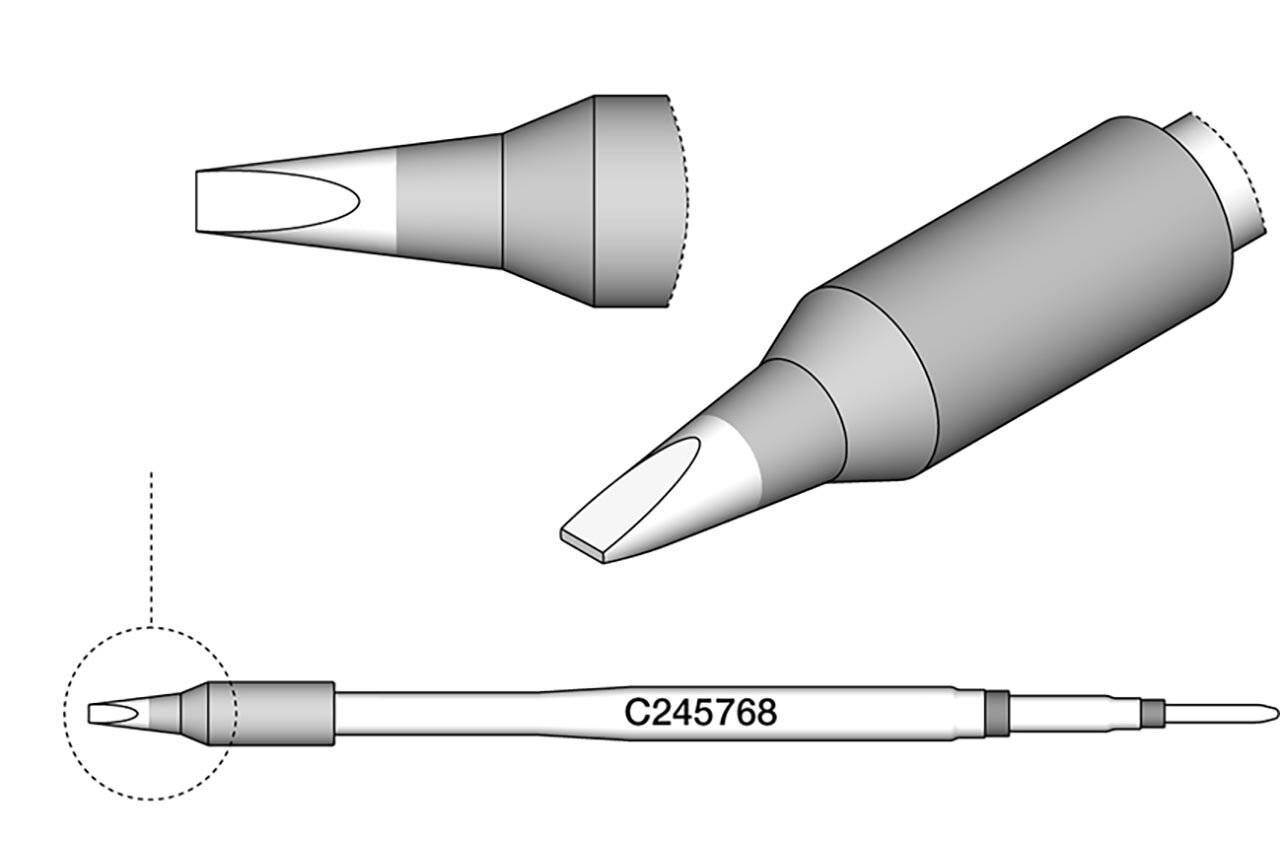 Die C245768 ist kompatibel mit den T245-Handstücken von JBC und gehört zur umfangreichen C245-Serie, die über 150 verschiedene Modelle in verschiedenen Formen und Größen umfasst. Diese Vielseitigkeit ermöglicht es, die passende Lötspitze für nahezu jede Anwendung zu finden.
