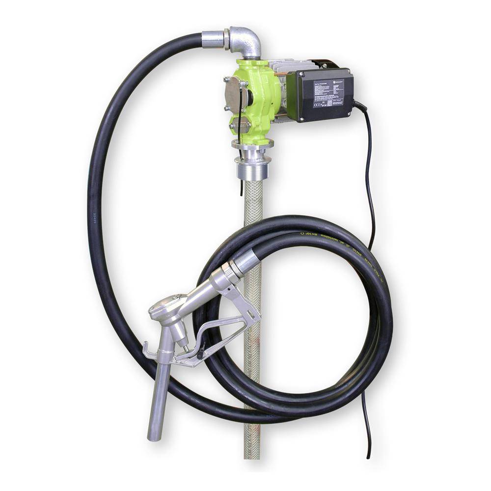 Einsatzbereich Die TECPUMP 600 Eco ist eine Elektrische Flügelzellenpumpe für Diesel, Heizöl EL/L und Kühlerfrostschutz (Konzentrat). Beschreibung Die TECPUMP ist für den Einsatz in der Landwirtschaft, Industrie, Werkstätten, Tankstellen und ähnlichen Einrichtungen bestens geeignet. Sie ist selbstansaugend und hat einen integriertem Heberschutz. Der Zapfschlauch hat eine länge von 4 Meter und ist mit dem Zapfventil ZV 2000 inkl. Schlauchdrehgelenk ausgestattet. Die Pumpe hat einen 1,6 Meter langen Saugschlauch mit integriertem Filter. Technische Daten Förderleistung - ca. 55 l/min Förderdruck - max. 2 bar Schutzart - IP 54 Sauganschluss - G 1" Zapfschlauch - 4 m Antriebsleistung - 370 W Mediumtemperatur - -10 bis +40 °C Saugschlauch - 1,6 m Ansaughöhe max. - 4 m Umgebungstemperatur - -20 bis +40 °C Zapfschlauch Querschnitt - DN 19 x 4 mm Stromaufnahme - 2,6 A Fassgewinde - G 2" Kabellänge - 2 m Abmessungen (B x T x H) - 182 x 245 x 150 mm Gewicht - 7,6 kg