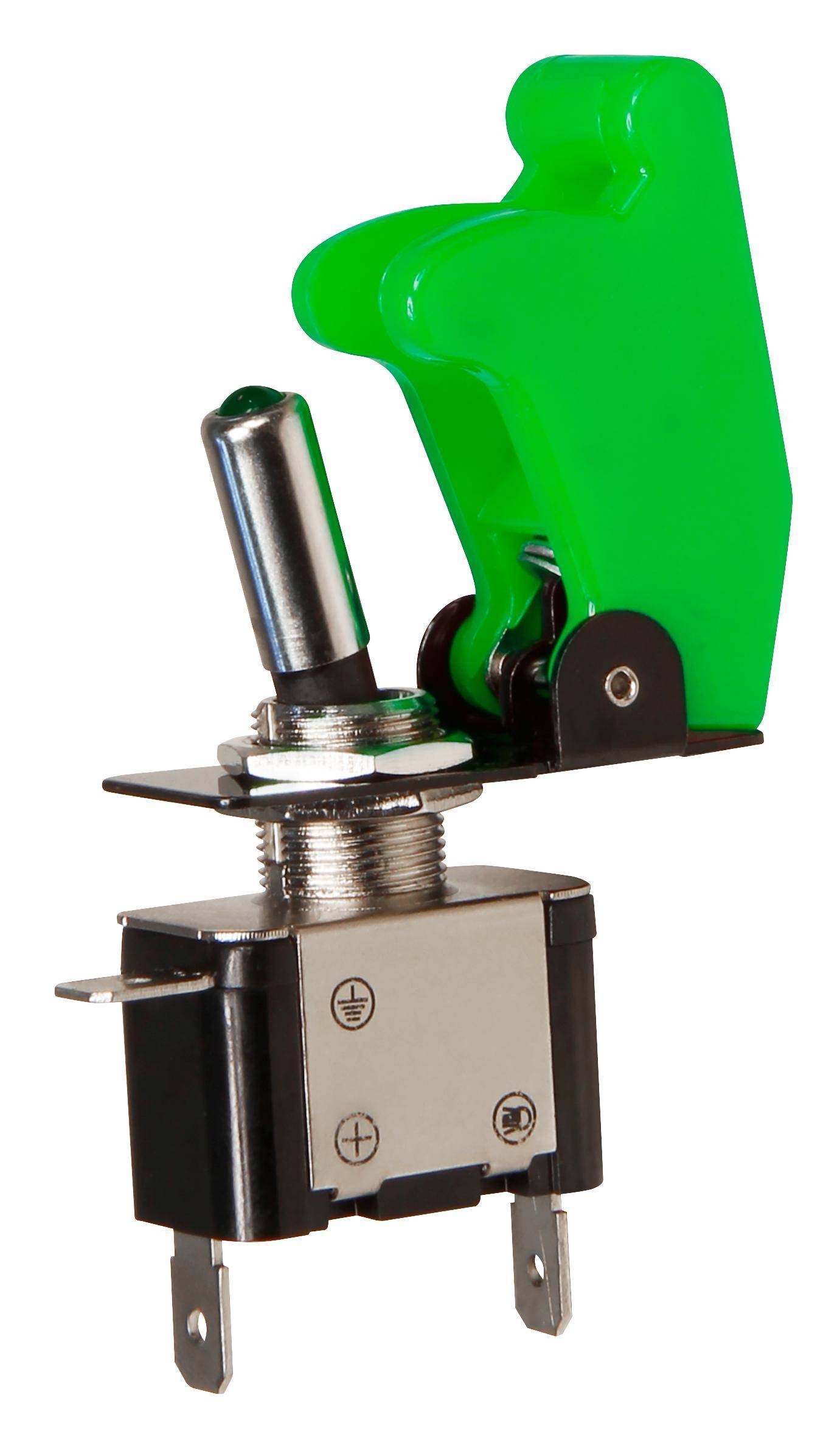 1x Kippschalter mit Schutzkappe und LED, 12V / 20A, grün