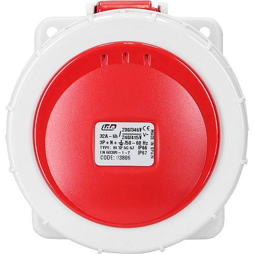 zum Einbau in Wandverteiler, Gehäuse Thermoplast, Schlagfestigkeit IK08, halogenfrei, mit verschraubbarem Klappdeckel, ™ffnungswinkel 180ø, Moosgummi-Flanschdichtung, 4-Loch-Flansch-Befestigung und Schraubklemmen, Flansch 96x80mm, Einbautiefe 50mm, Neigung 17ø, spritzwassergeschtzt IP67, 240/415V, 3-polig + N + PE, 6h