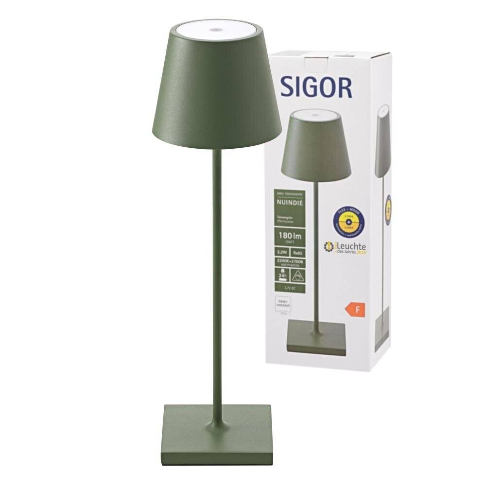 LED Akku-Tischleuchte Nuindie aus Aluminiumdruckguss in Tannengrün IP54
