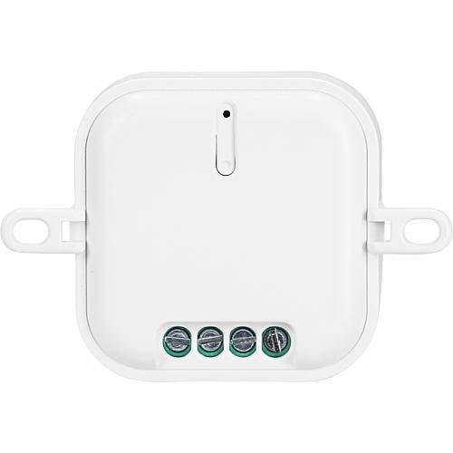 zum Einbau in Schalter- und Abzweigdose und zum Schalten von Leuchten und Geräte, mit Feinsicherung T 5A 20mm und abbrechbaren Befestigungslaschen, IP20, 230V/1000W, Funkfrequenz 433,92MHz, Funkreichweite 30m im Innenbereich, 1 Kanal