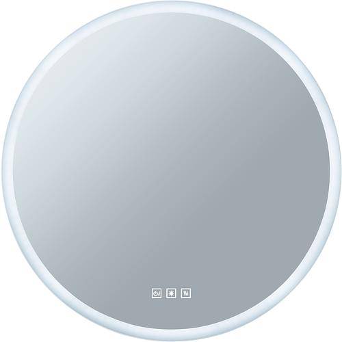 Sockel Metall weiá, Spiegel mit satinierten Glasausschnitt, mit Touchdimmer zum Dimmen und Schalter zum Wechseln der Lichtfarben zwischen 2700K/4000K/6500K, LM nicht austauschbar, Garantie 5 Jahre