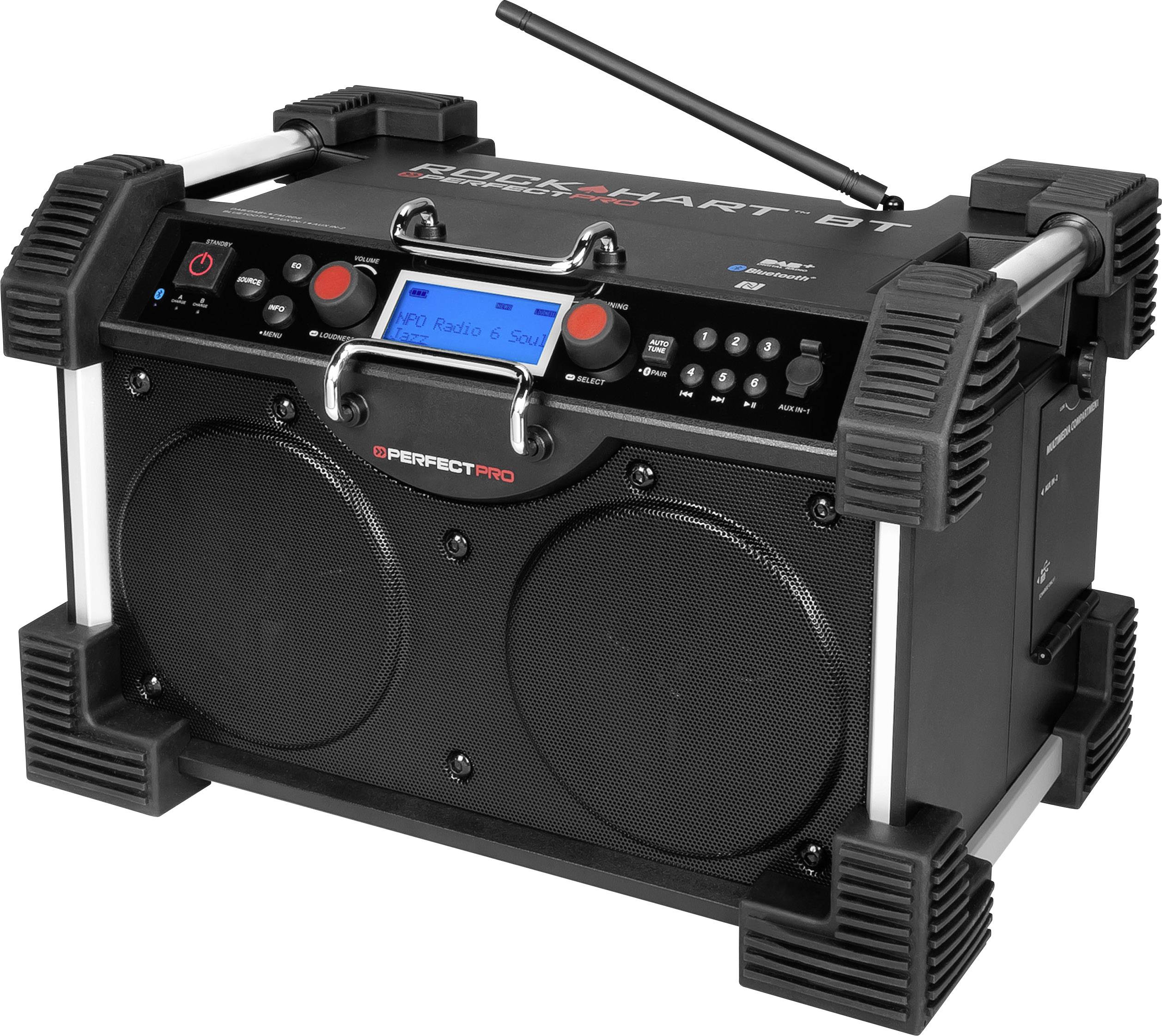 PerfectPro Rockhart BT Baustellenradio DAB+, UKW AUX, Bluetooth®  Akku-Ladefunktion, spritzwassergeschützt, staubdicht, stoßfest, wiederaufladbar S