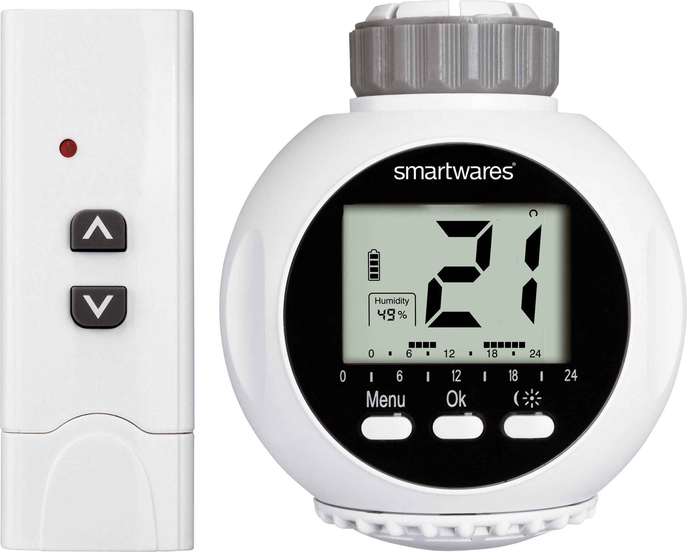 08711658044668, 8711658044668, Smartwares, SHS-53000, Funk-Heizkörperthermostat mit Fernbedienung, Fernbedienung, Funk-Fernbedienung, Funl-Thermostat, Thermostat, Funk-Heizkörperthermostat, Heizkörperthermostat, Heizkörper, Regler, Smartwares, SmartHome, HomeEasy,