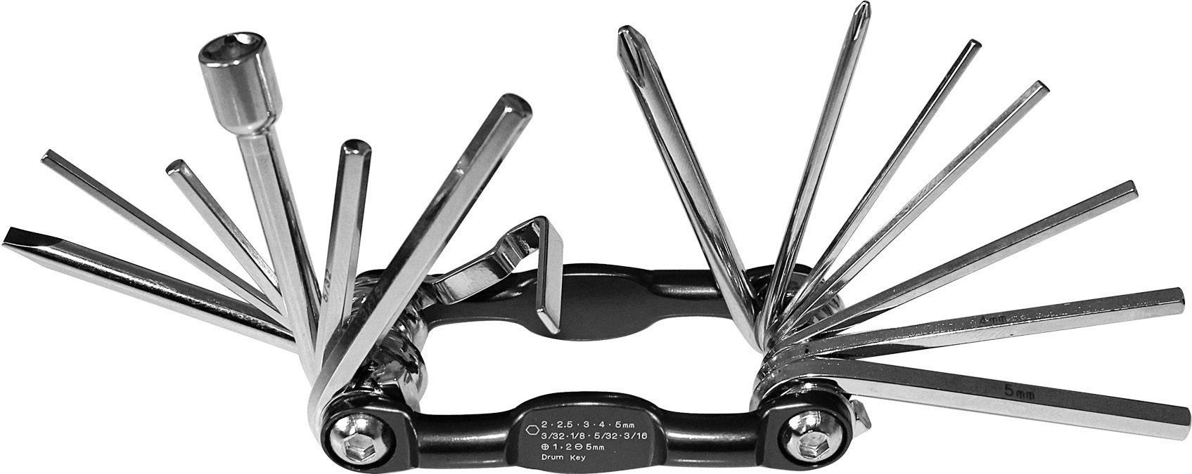 Es vereint 13 Werkzeuge in einem handlichen Format: · diverse Schraubendreher & metrische und zöllige Sechskantschlüssel · 5 x metrisch: 2.0, 2.5, 3.0, 4.0, 5.0mm · 4 x Inch: 3/32", 1/8", 5/32", 3/16" · 3 Schraubendreher FL 5.0mm, PH1, PH2 · Alle Schlüssel aus hochwertigem CV-Stahl.