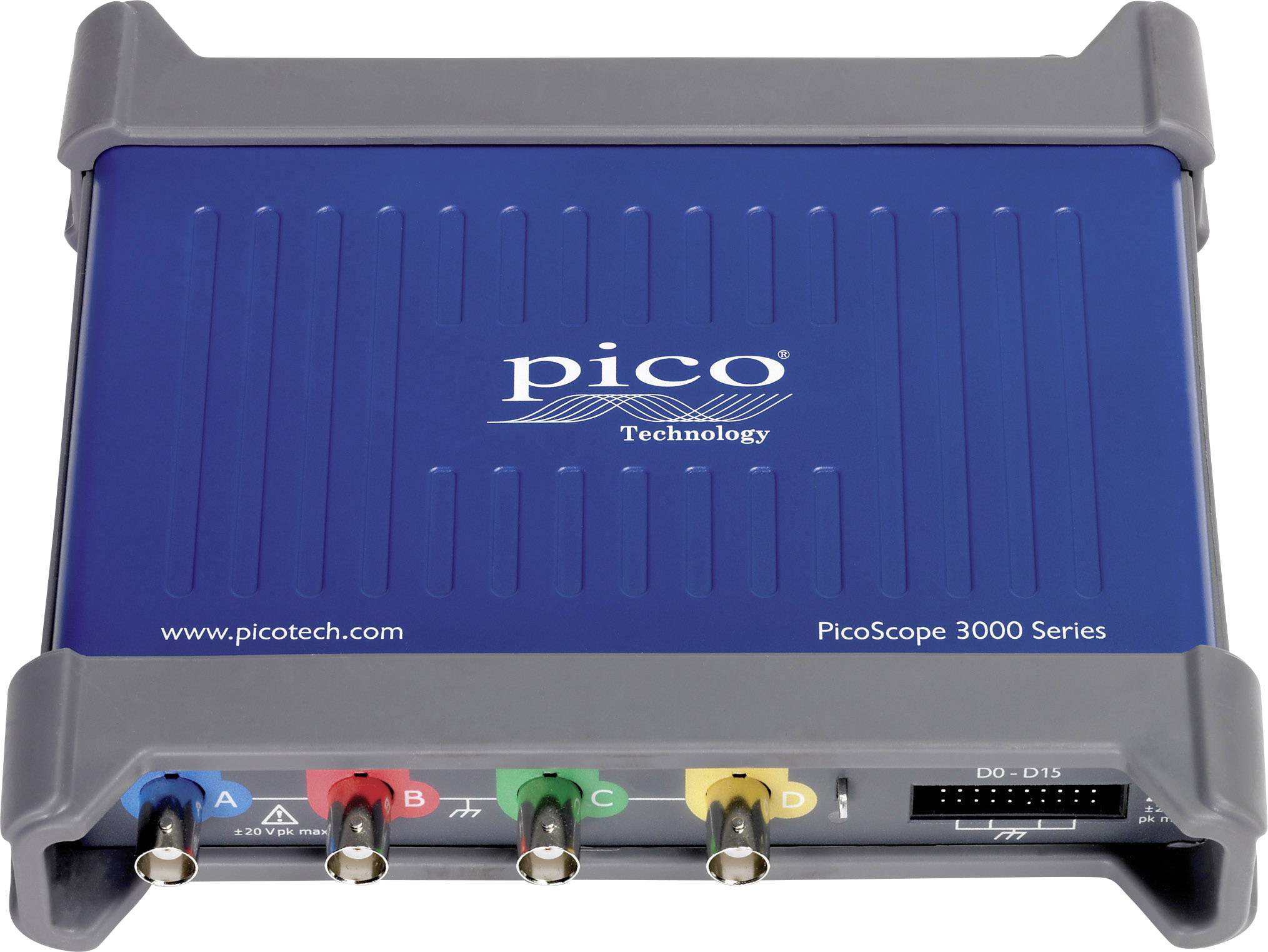 Die kompakten Oszilloskope der PicoScope 3000D-Serie sind mit USB-Anschluss ausgestattet, es sind vollständig tragbaree Prüfsysteme - Das Gerät wird jeweils an einen Laptop angeschlossen, so dass es überall und jederzeit eingesetzt werden kann. Es wird unterstützt durch die kostenlos herunterladbare Software PicoScope 6 und bietet erweiterte, kostengünstige Lösungen in Anwendungen, die vom Systemdesign, Forschung und Prüfung bis hin zu Ausbildung, Wartung und Reparatur reichen. Alle Modelle sind mit einer USB-3.0-Schnittstelle ausgestattet und sind vollständig kompatibel mit USB 2.0. Wie alle anderen PicoScopes zeigt die 3000D-Serie Signalformen in einem anpassbaren Fenster auf dem PC des Benutzers, so dass ein übersichtlicher Rahmen für mehrere hochauflösende analoge und digitale Spuren vorhanden ist. Die Speicherung, gemeinsame Nutzung und Analyse der Signalformen erfolgt schnell und einfach mit Hilfe von PC-Netzwerken sowie Speicher- und Verarbeitungsfunktionen. Tiefe Messpuffer ermöglichen lange Erfassungen selbst bei schnellen Echtzeit-Abtastraten von bis zu einem Gigasample pro Sekunde. Hardwarebeschleunigte Datenverarbeitung sorgt für glatte und schnelle Display-Updates selbst bei besonders großen Erfassungsgrößen. Viele erweiterte Funktionen sind standardmäßig im Lieferumfang der 3000D-Serie enthalten, z. B. mathematische Kanäle, automatische Messungen mit Statistik, Spektralanalyse und ein Anzeigemodus für Farbnachleuchten. Ebenfalls integriert sind erweiterte digitale Auslösung mit Impulsbreite, Fenster, Spannungsabfall, Kanallogik, digitale Muster und andere Qualifizierer, Maskengrenzprüfung und Alarme. Serielle Dekodierung unterstützt SPI, I2C, I2S, RS-232/UART, CAN, LIN und FlexRay-Protokolle auf bis zu 20 analogen und digitalen Kanälen, auch bei einer gleichzeitigen Mischung von Protokollen.