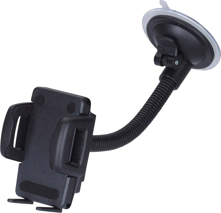 Flexibel einstellbarer Schwanenhals (einmalige Einstellung) · Ultrastarker Halt an der Windschutzscheibe dank Qualitätssauger "Made in Germany" · Schlankes und leichtes Design · Saugerdurchmesser 70 mm, Länge 136 mm, Länge SW 110 mm, Ø Aludraht 6 mm · Einfache & schnelle Freigabe des Smartphones per Knopfdruck · Freie Bedienelemente durch bewegliche Stege und Drehen des Halters um 180° · Moosgummi schützt die Geräte vor Kratzern · Perfekter & sicherer Halt durch übergreifende Seitenbacken · Schnelle und einfache Montage durch Saugerbefestigung
