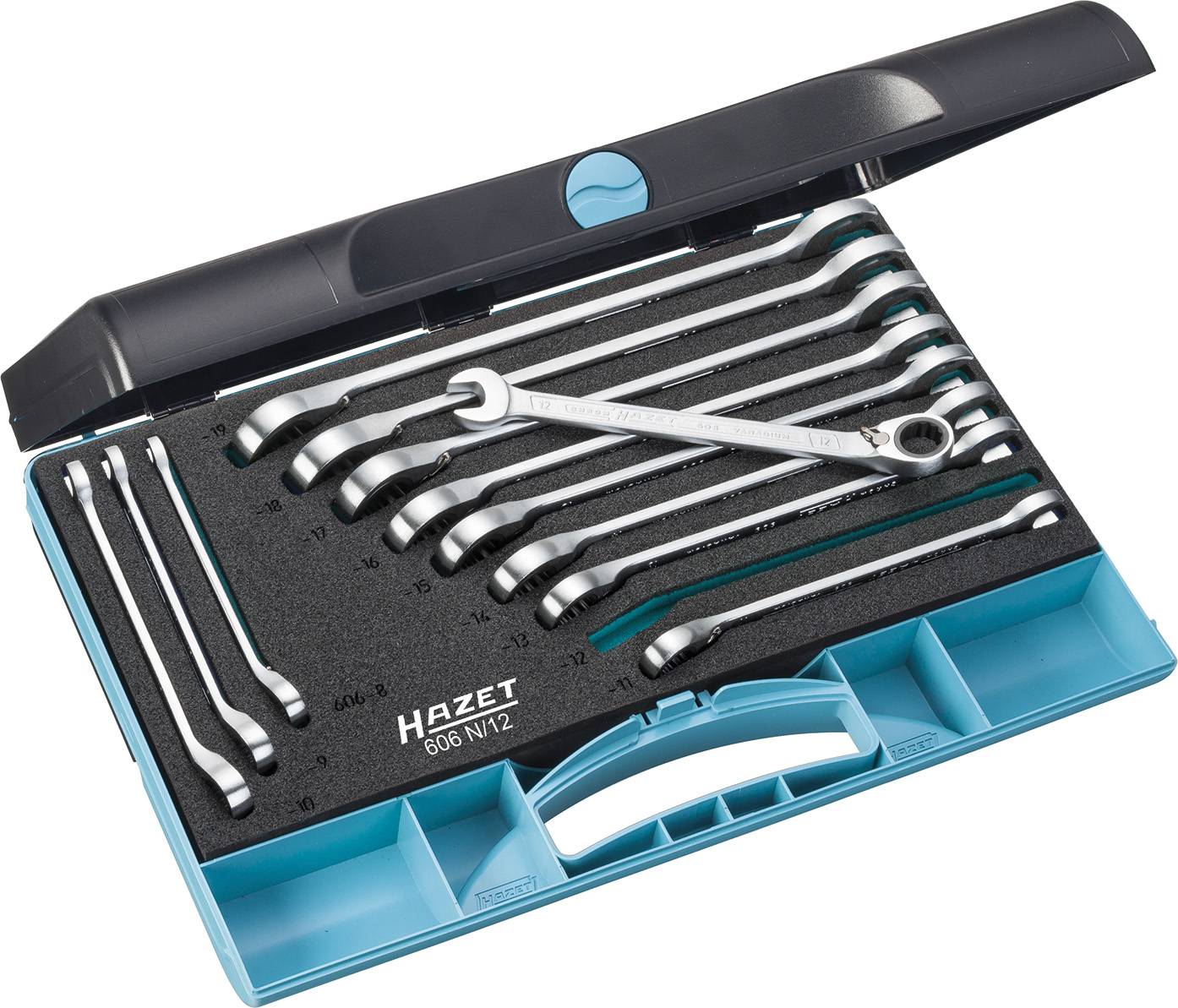 Hazet 606N/12 Knarren-Ring-Maulschlüssel-Satz 12teilig Schlüsselweite (Metrisch) 8 - 19 mm