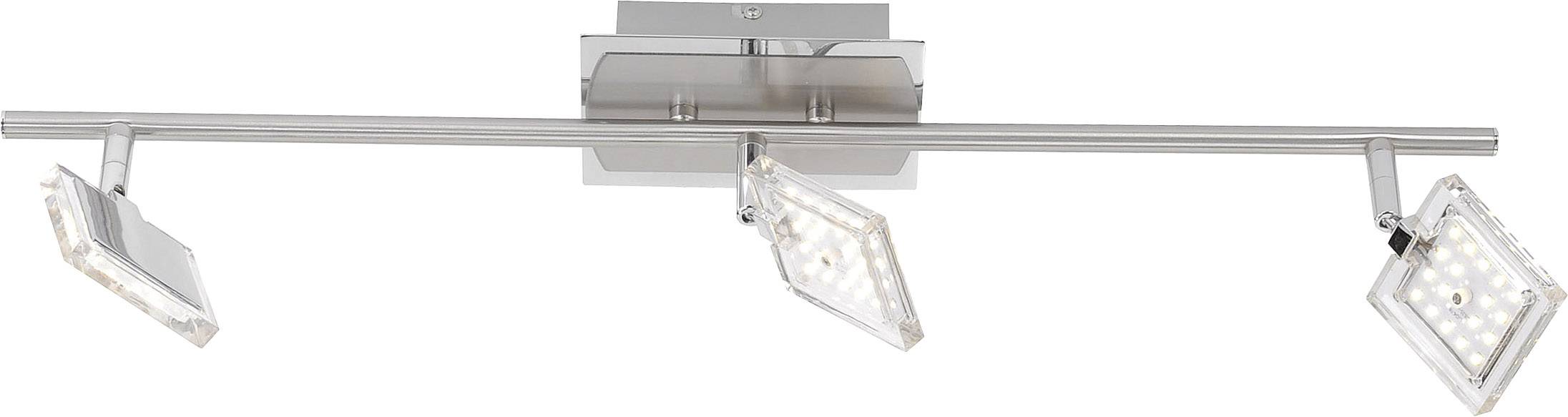 Ein EyeCatcher erstrahlt Ihren Wohnraum: Die chromfarbene LED Deckenleuchte begeistert mit ihrem modernen Design. Sie wird inklusive drei festverbauten LED-Leuchtmitteln geliefert und sorgt mit ihrer warmweißen Lichtfarbe für eine gemütliche Wohlfühlatmosphäre. Durch die Glasplättchen gibt Sie ein schönes, blendfreies Licht ab. Die einzelnen Spots sind durch ein Kugelgelenk beweglich und können somit ganz nach Belieben verstellt werden. Dank der verwendeten LED-Technik zeichnet sich die Leuchte als äußerst energiesparend aus und überzeugt dabei mit einer geringen Wärmeentwicklung sowie hohen Lebensdauer. Die Verarbeitung und Auswahl des Materials verleiht der Wandleuchte ein stimmiges Gesamtbild und könnte mit ihrem schicken Auftreten zu einem absoluten Hingucker in Ihrem Wohnbereich werden.
