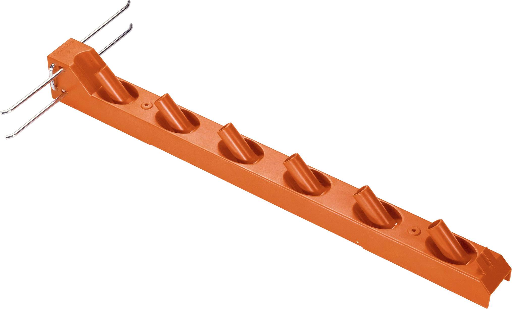Für eine platzsparende Aufbewahrung von GARDENA combisystem-Produkten, ist die GARDENA Geräteleiste das optimale Produkt. Sie ist ausgestattet mit 6 Aufnahmen für combisystem-Produkte und Halterungen für combisystem-Stiele. Die Geräteleiste ist aus hochwertigem Kunststoff und wird komplett mit Schrauben und Dübeln zur Befestigung an der Wand geliefert.