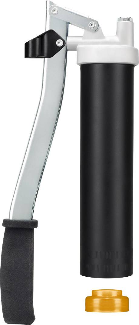 Förderdruck: 400 bar · Für jede handelsübliche Fettkartusche 400 g nach DIN 1284 · Variabler Hub – Fettförderung bereits bei minimaler Hebelbewegung möglich · Kartusche wieder befüllbar mit PRESSOL-Fülladapter · Ergonomischer Handgriff, rutschsicher, optimale Kraftübertragung und Handhabung.