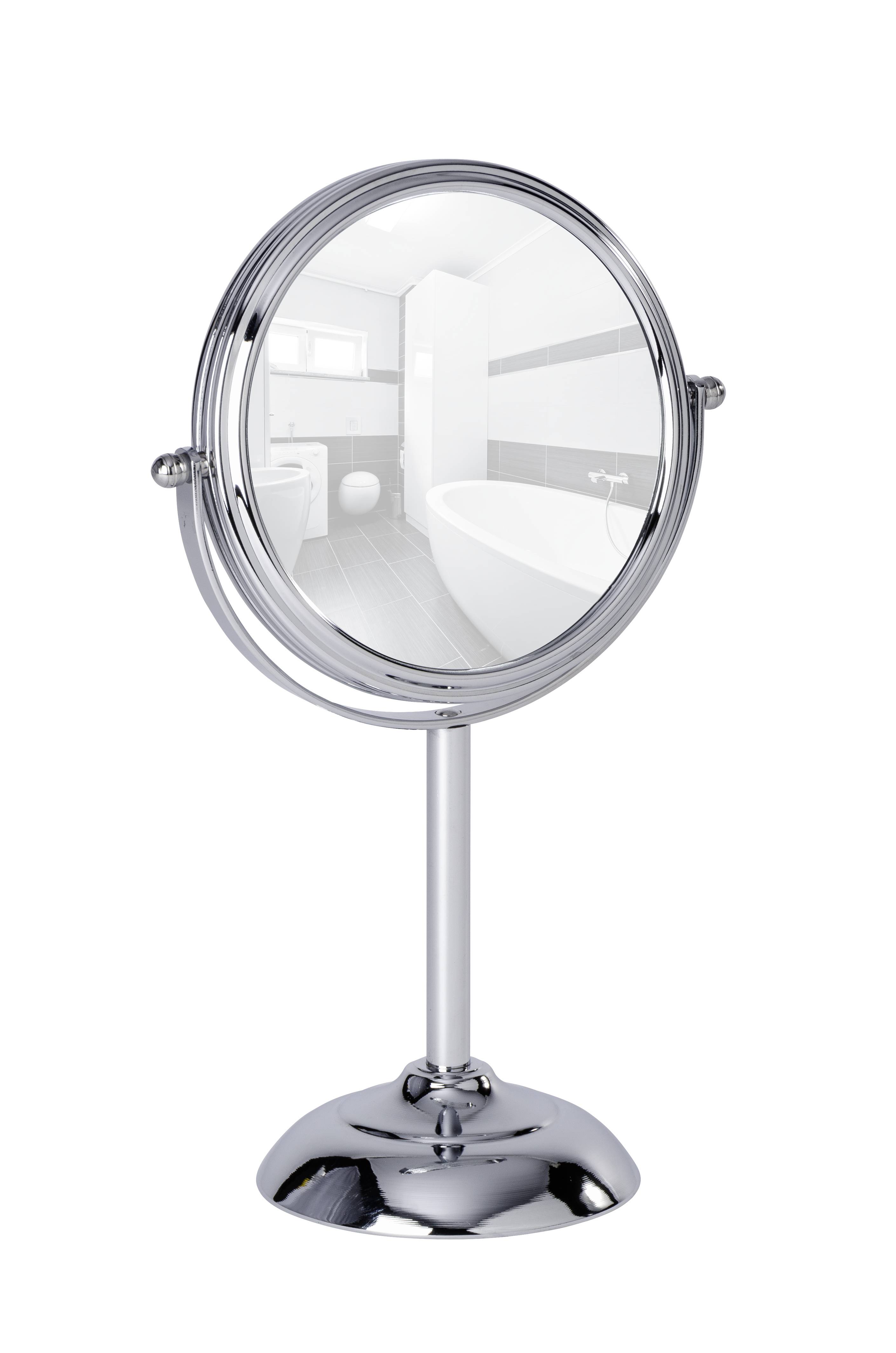 Erleichtert wird die Anwendung durch die hohe Standfestigkeit bei einer Fläche von Ø 15 cm. Gefertigt ist der schöne Spiegel aus verchromtem Stahl.