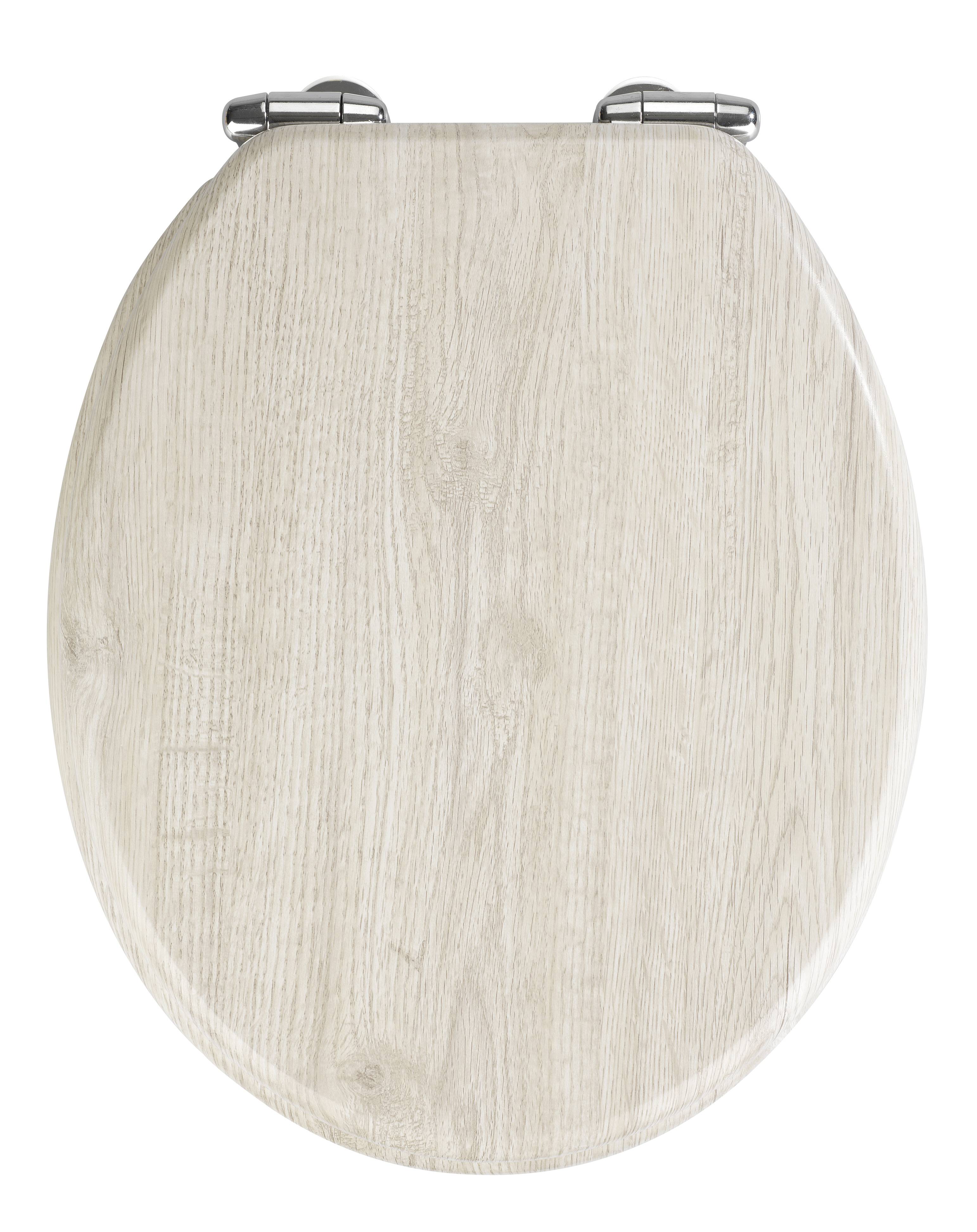 Trendy im grauen Eichendesign erfrischt der Toilettensitz Eiche das Badezimmer oder Gäste-WC. Er hat eine ovale Form und bietet angenehmen Sitzkomfort.