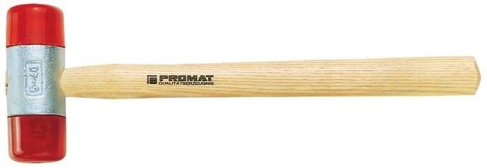 Hammerkörper aus verzinktem Grauguss · Schlagkopf aus schlagfestem CA (Celluloseacetat) · mit lackiertem Stiel Weitere technische Eigenschaften: · Länge: 340mm · Gewicht: 860g · Einsätze: Celluloseacetat rot · Stiel: Holz