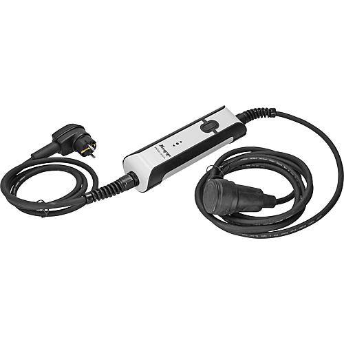 Schnurzwischengerät, ideal fr ortsveränderliche Elektrogeräte im Freien, allpolig schaltend mit Differenzstromschutzeinrichtung, Unterspannungsausl”sung, Fremdspannungserkennung, Schutzleitererkennung und -berwachung sowie Kontroll-Glimmlampe, Ein- und Prf-Taste, Gehäuse schlagfest, VDE/GS der BG K”ln