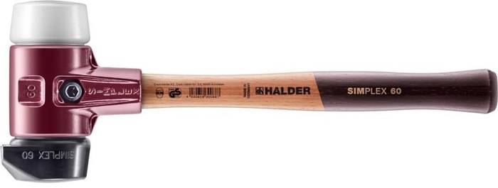 2-teiliges Spanngehäuse aus Temperguss · Schlageinsätze und Simplex-Stiel sind leicht auswechselbar durch Lösen bzw. Spannen der Innensechskant-Spannschraube · Schlagköpfe abriebfrei · mit je 1 Stück aus Gummikomposition, schwarz, mit Standfuß (mittelhart) und Gummikomposition, schwarz (mittelhart) · verschleißarm · Anwendungsbereiche: Garten-/Landschaftsbau, Pflasterarbeiten, Randsteine setzen, Mauerwerk/Treppen setzen, Zaunbau, Gerüstbau, Zeltbau, Fertighausbau, Zimmerei, Wartungs-/Reparaturarbeiten Weitere technische Eigenschaften: · Stiel: Holz · Bezeichnung: SIMPLEX-Schonhammer · Eigenschaft Einsatz 1: (1): dämpfend, geruchsneutral, verschleißarm · Eigenschaft Einsatz 2: (2): sehr widerstandsfähig, verschleißfest · Gehäuse: Temperguss · GS: ja · Härtegrad Schlageinsatz 1: 2 / 5 · Härtegrad Schlageinsatz 2: 3 / 5 · Nennmaß: D=60 mm · Schlageinsatz 1: (1): Gummikomposition, schwarz, mit Standfuß, mittelhart, dämpfend, geruchsneutral, verschleißarm · Schlageinsatz 2: (2): Superplastik, weiß, mittelhart, sehr widerstandsfähig, verschleißfest