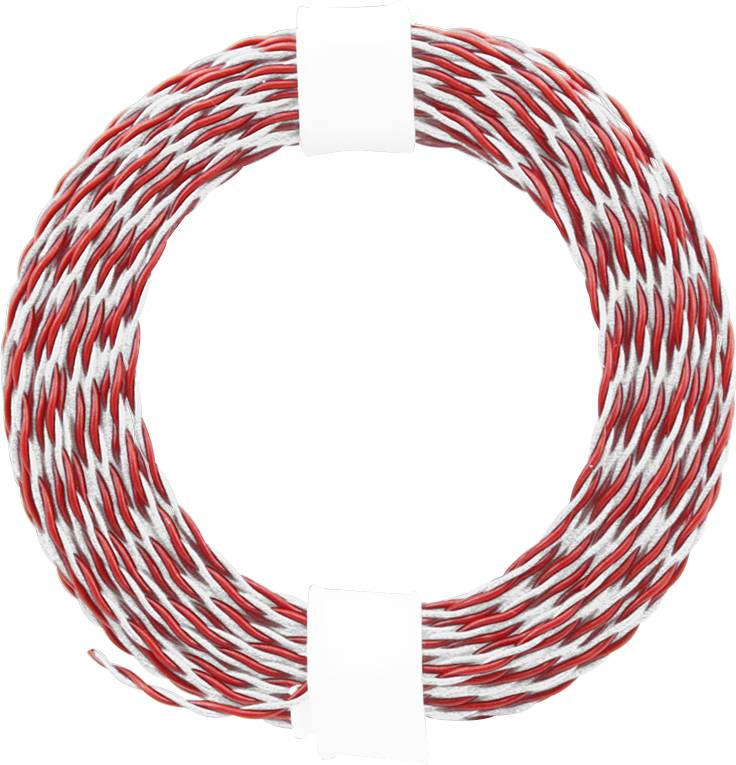 2-adrig - rot-weiß - 2x 0,04 mm ² (5 x 0,1 mm) - Kunststoff isoliert - 10 Meter - sehr gut zum Anschluss von LEDs geeignet.