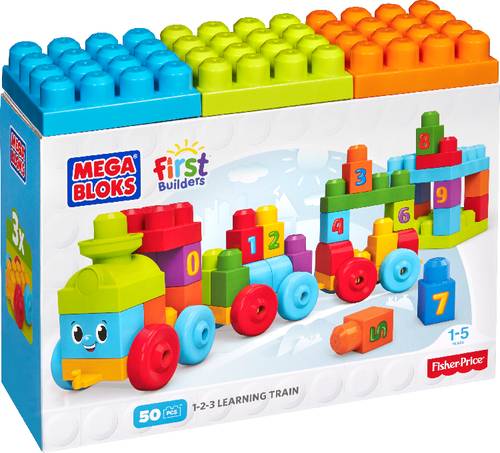 Mit dem Lernzug von Mega Bloks lernen Kindergartenkinder das Zählen ganz einfach nebenbei! Der freundlich lächelnde Zug fährt im Kinderzimmer ein und lädt alle Kinder dazu ein mithilfe der drei großen Radbasisteile, den Bausteinen mit aufgedruckten Zahlen und speziellen Bauteilen jede Menge fantasievollen Bauspaß zu haben! Ganz einfach können die Kleinen sich auf diese Weise spielerisch mit den Zahlen von 1 bis 9 vertraut machen und immer wieder unterschiedliche Kombinationen ausprobieren. Auf den drei großen Bauplatten lassen sich die eigenen Kreationen bauen und immer wieder neu zusammensetzen für unendlichen Zähl- und Bauspaß!