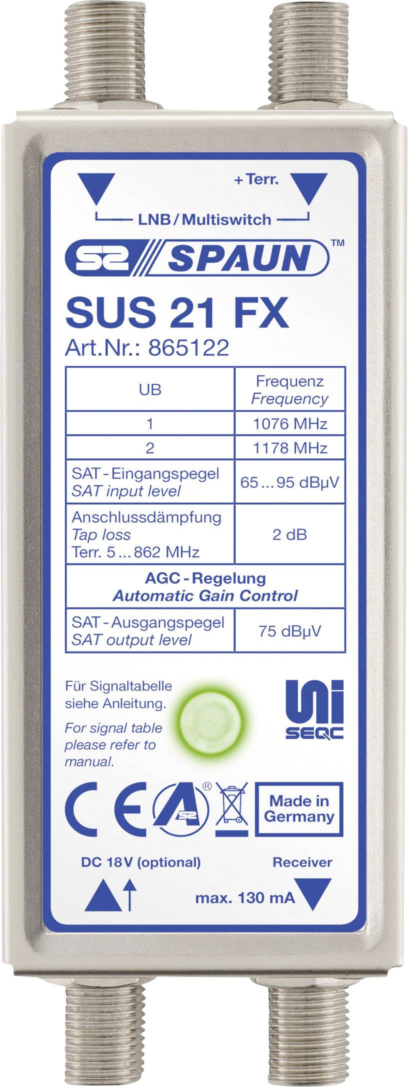 Spaun SUS 21 FX SAT Multischalter Unicable Eingänge (Multischalter): 3 (2 SAT/1 terrestrisch)