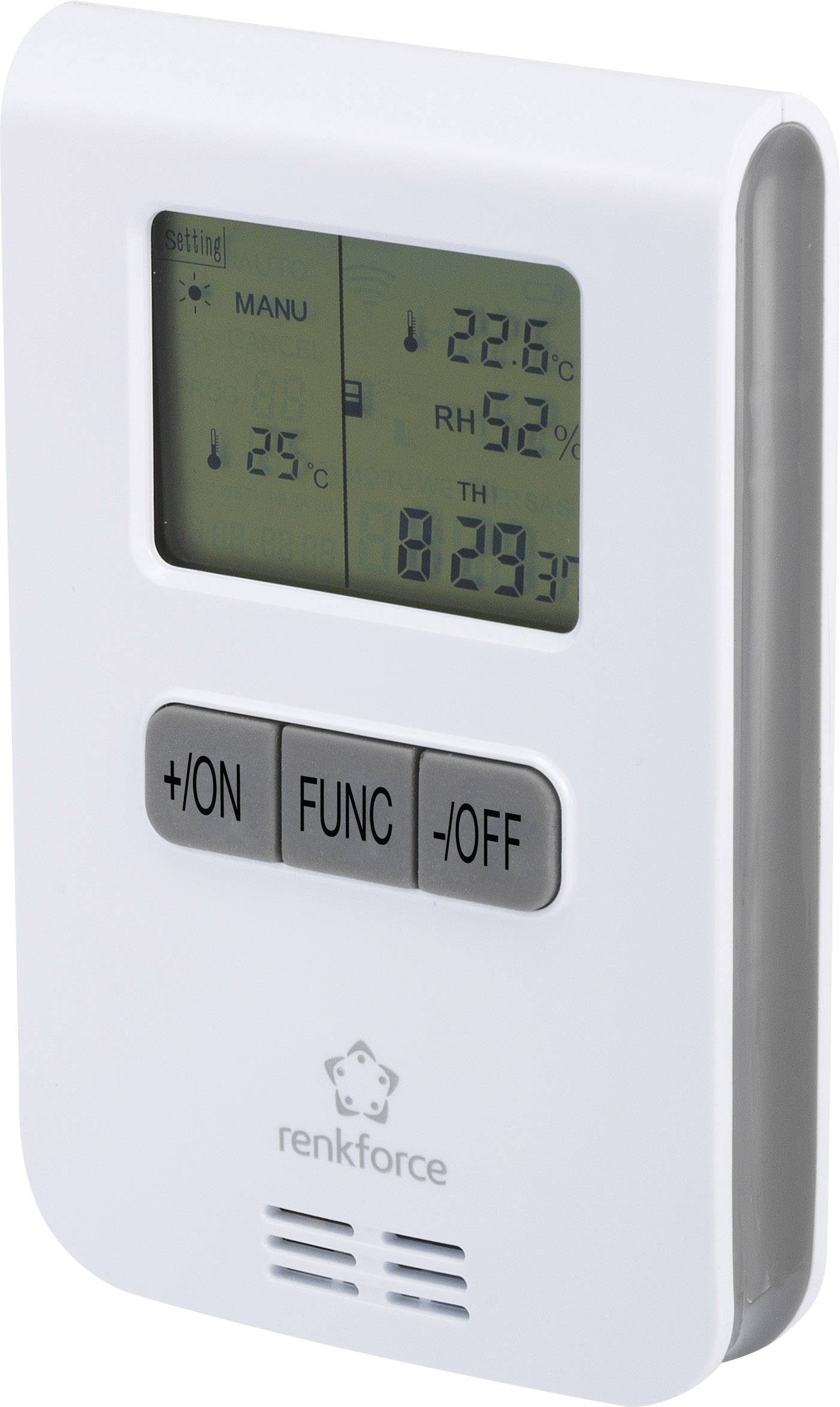 Der elektrische Verbraucher kann über kompatiblen Emfänger (nicht im Lieferumfang) des RS2W-Funkschaltsystems temperaturabhängig ein-/ausgeschaltet werden. Das Funk-Thermostat wird über zwei AAA/Micro-Batterien betrieben. Das Funk-Thermostat kann zwischen einem Heizmodus und einem Kühlmodus umgeschaltet werden, so dass sich entweder ein Heiz- oder ein Kühlgerät steuern lässt. Mit 8 verschiedenen Schaltprogrammen, die unabhängig voneinander arbeiten, lassen sich Schaltzeiten für einen einzelnen Tag, für alle Wochentage (Montag - Freitag) oder für die ganze Woche (Montag - Sonntag) festlegen.