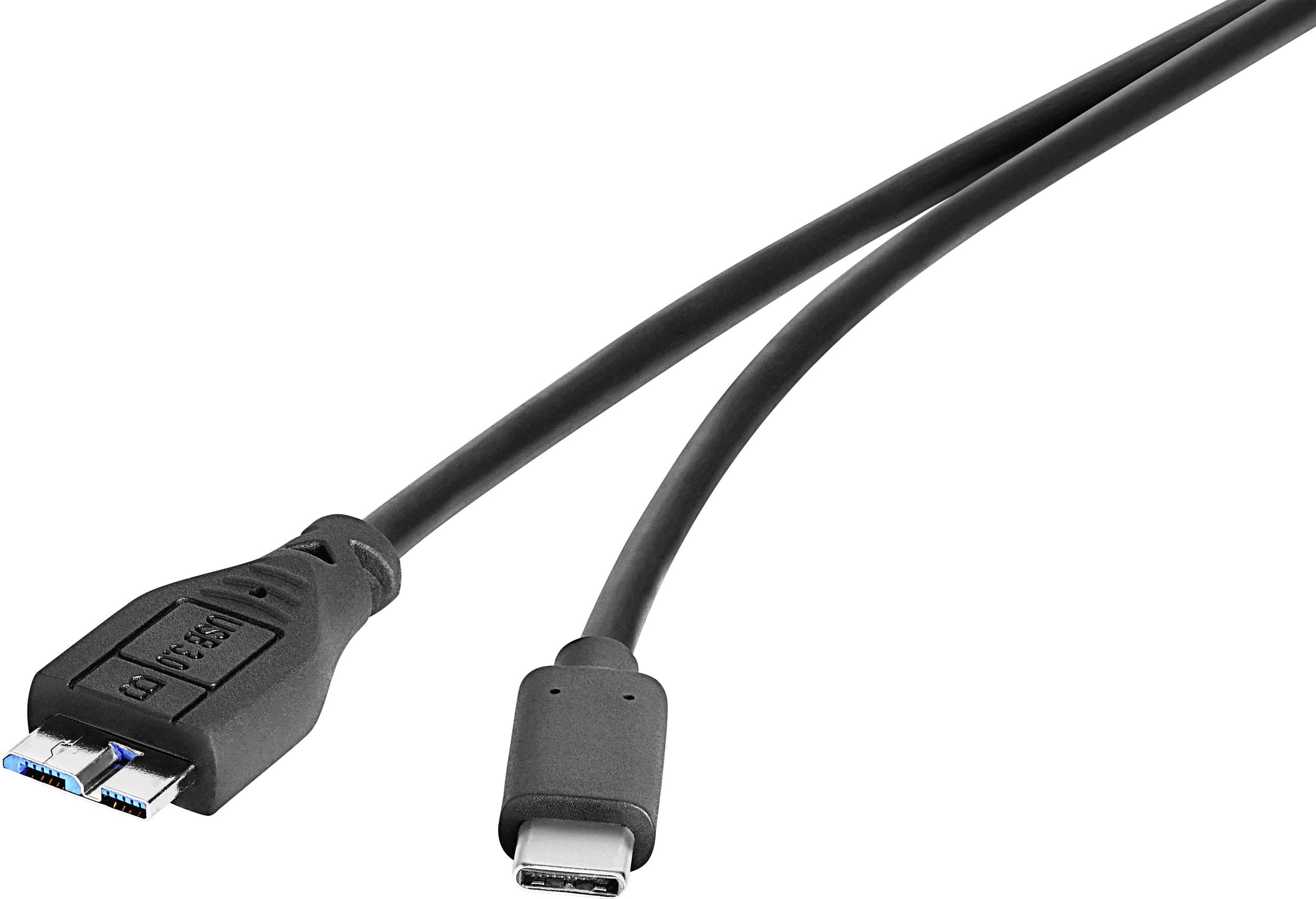 Renkforce USB 3.1 Anschlusskabel [1x USB-C™ Stecker - 1x USB 3.0 Stecker Micro B] 1m Schwarz vergoldete Steckkontakte