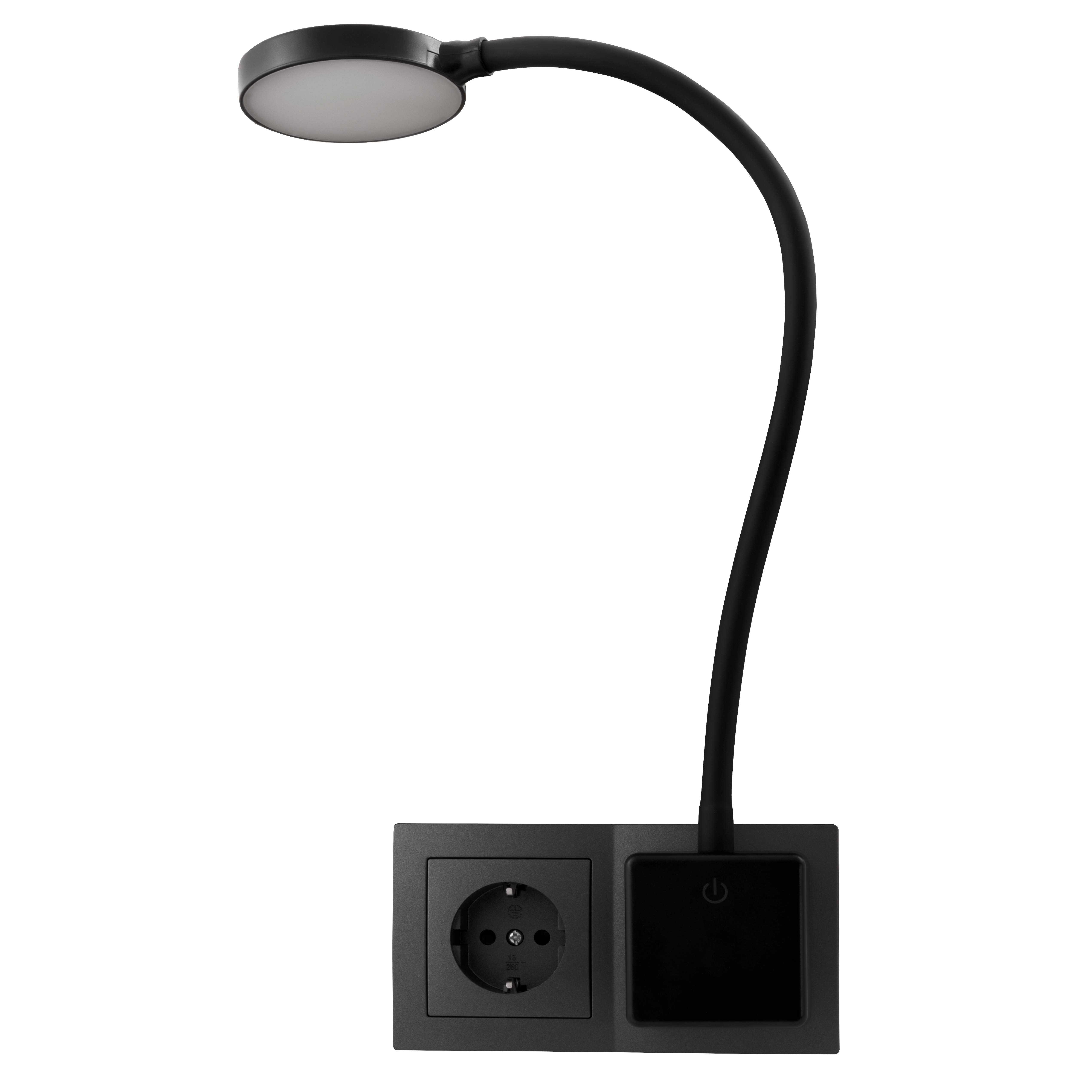 EINLICHT, 1452997, LED Steckdosenleuchte HALO schwarz 3, 3W 438lm step-dimm, LED Leselampe in 3 Stufen dimmbar, mit Schwanenhals, LED Nachttischlampe mit Touchschalter und Dimmfunktion, LED Leseleuchte für einfache Montage in einer Steckdose, Wandlampe, Wandlicht, Wandbeleuchtung, Wandleuchte, Leuchte, Lampe, Zimmerlicht, Zimmerbeleuchtung, Zimmerlampe, Zimmerleuchte, Wandstrahler, Wand-Spot