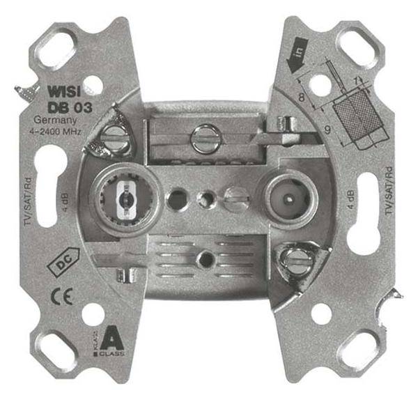 Antennensteckdose 2-Loch-Dose, für Antennen-, BK- und Satellitenempfangs-Anlagen Stichdose Frequenz: 4-2400 MHz Auskoppeldämpfung: 4,5 dB bei 4-862 MHz Auskoppeldämpfung: 5,5 dB bei 862-2400 MHz für Schraub- und Spreizbefestigung, EMV-Schutzklasse A, WISI DB 03