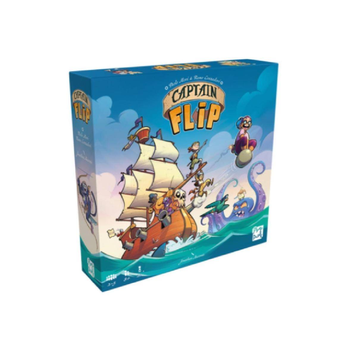 Im kurzweiligen Familienspiel Captain Flip ist es als Captains von Piratenschiffen eure Aufgabe, eine bunte Crew anzuheuern und die meisten Münzen zu sammeln. Dabei zieht ihr Plättchen mit Charakteren aus dem Beutel und platziert sie clever auf eurer Abenteuertafel. Ihr seid nicht zufrieden mit Smutjes, Papageien, Navigatorinnen, Augucken oder Kanoniererinnen? Dann könnt ihr durch den innovativen Flip-Mechanismus einmalig entscheiden, das Plättchen umzudrehen und einen anderen Charakter zu erhalten. Durch spannende Sofort-Effekte und Synergien könnt ihr das Beste aus eurer Crew herausholen – oder euer Schiff in die Luft jagen. Wer am Ende den größten Schatz hat, gewinnt!