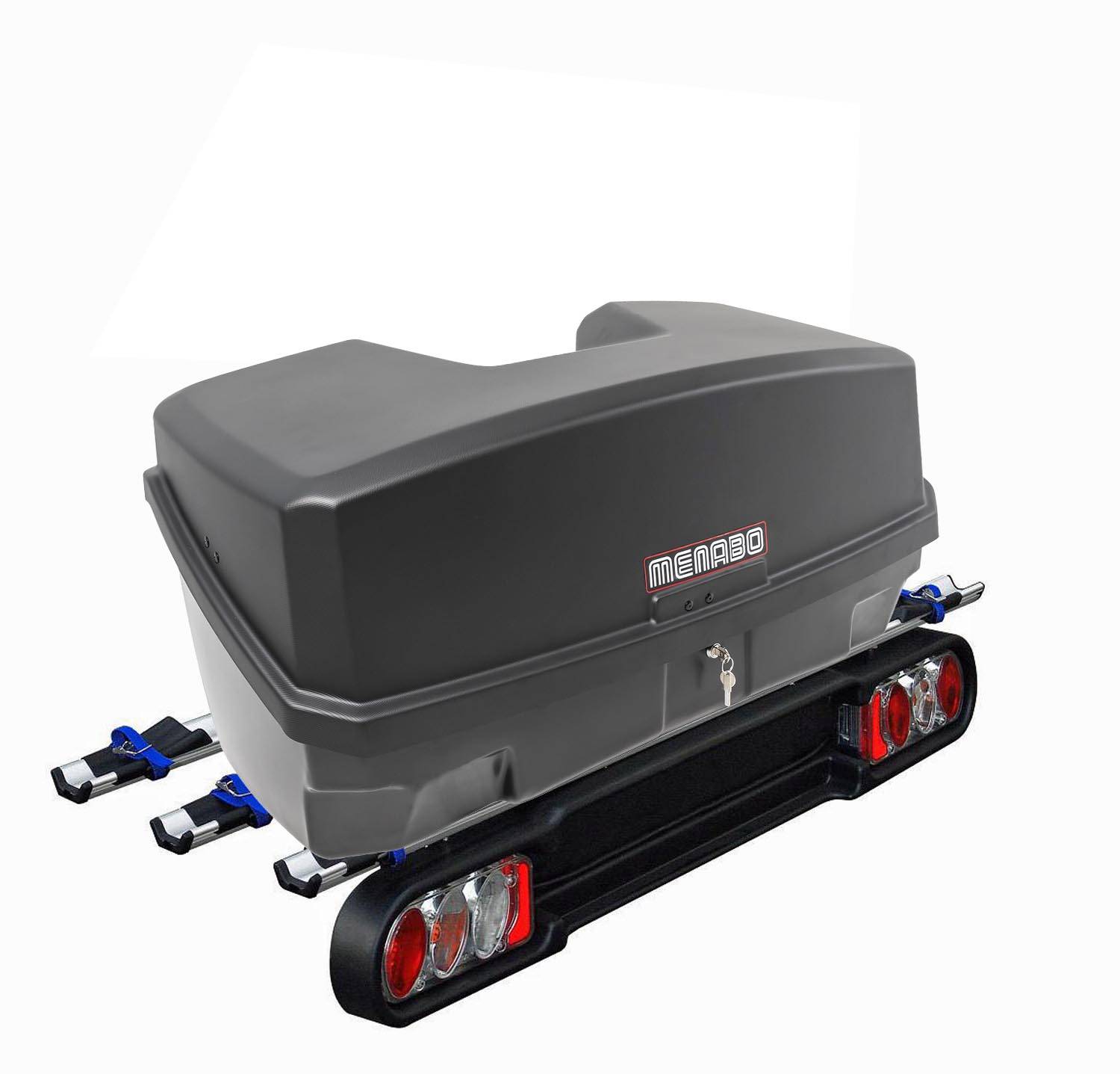 Menabo Kupplungträger Heckträger Race III für 3 Räder klappbar + Nekkar Transportbox Gepäckbox 300 Liter