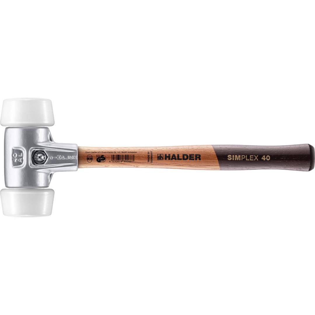SIMPLEX-Schonhammer Bei diesem SIMPLEX–Schonhammer sind spezielle Schlageinsätze D50mm in das Gehäuse D40mm verbaut. Dieser Halder-Topseller ist ein mittelharter Kunststoff-Einsatz aus extrudiertem, extrem homogenem Material. Das extra leichte Aluminium-Gehäuse mit integrierter Stielschutzhülse lässt den Anwender die Schlagkraft gut kontrollieren und selbst bestimmen. Der hochwertige, schwingungsdämpfende, ergonomisch geformte Holzstiel ist im Griffbereich doppelt lackiert und somit schmutzunempfindlich. Gemäß dem cleveren SIMPLEX-Prinzip sind alle Komponenten austauschbar und nachrüstbar. Dies schont nicht nur den Geldbeutel, sondern auch Ressourcen. Produktmerkmale: Anwendungsgebiete: Maße: