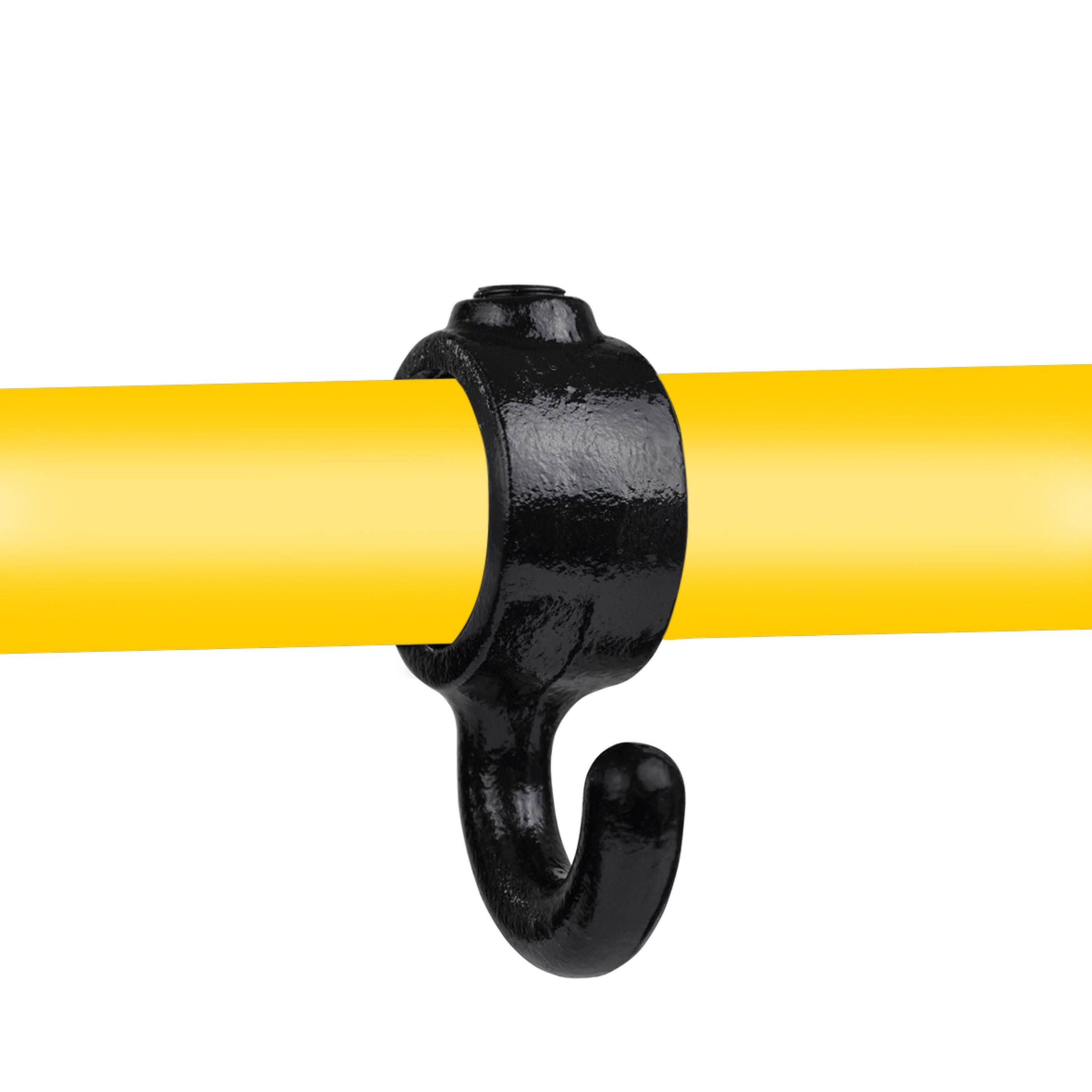 Der Schelle Typ 64 „Sicherungsring mit Haken horizontal“ ist primär dazu gedacht Abspannungen durch Gummi- oder Zurrseile aufzunehmen. Er kann aber auch banal als Aufhänger an horizontalen Rohren genutzt werden. Die sekundäre Funktion entspricht dem Bauteil Typ 60 nämlich zur Erhöhung des Rutschwiderstandes eines anderen Verbinders. Material, Eigenschaften und Ausstattung Verzinkte Metallschelle 1 Madenschraube Ein ausgeformter Haken