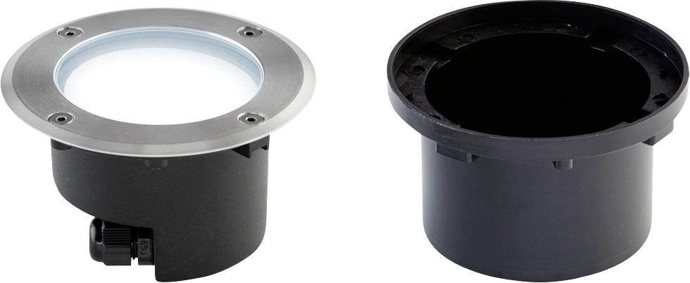 Der aus Alu-Druckguss gefertigte Leuchtenkörper ist mit Polyester überzogen, während die Abdeckplatte aus V4A-Edelstahl gefertigt ist. Durch die 2 seitlich angebrachten Kabelverschraubungen, welche für Kabel bis 9mm Durchmesser geeignet sind, ist es möglich, mehrere Leuchten durchzuverdrahten, wodurch die Installation bei längeren Leitungswegen deutlich erleichtert wird. Es besteht die Möglichkeit, die Leuchte ohne den im Lieferumfang enthaltenen Kunststoff-Einbautopf zu montieren, in diesem Fall beträgt die Einbautiefe 66mm und der benötigte Lochausschnitt 104mm. Die Kabeleinführung in den Einbautopf erfolgt von unten. Das mitgelieferte LED-Leuchtmittel kann bei Bedarf jederzeit ausgetauscht werden. Die maximale Überfahrgeschwindigkeit beträgt 25km/h.