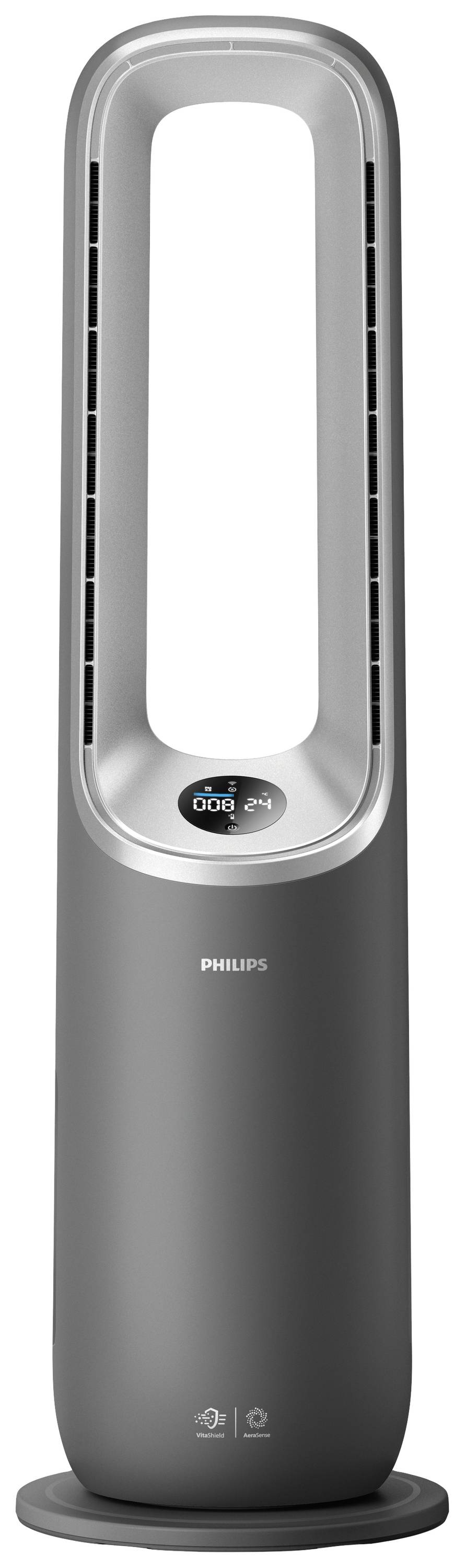 Der Philips Air Performer bietet umfassende Raumreinigung mit einer Luftreinigungsrate von 270 m³/h für Räume bis zu 70 m². Die NanoProtect HEPA-Filtration entfernt 99,97% der Partikel ab 0,003 Mikrometern effizienter als traditionelle Filtration. Der leistungsstarke Luftstrom ermöglicht angenehme Kühlung mit einer einstellbaren Rotation von bis zu 350 Grad und einer Luftzirkulation von 1440 m³/h. Zusätzlich bietet das Gerät eine schnelle und sichere Heizfunktion mit PTC Keramiktechnologie, die sich in drei Sekunden aufheizt. Mit zehn Heizstufen und KI-Technologie passt sich der Air Performer intelligent an Ihre Bedürfnisse an, um die Luft zu reinigen, zu kühlen oder aufzuwärmen.