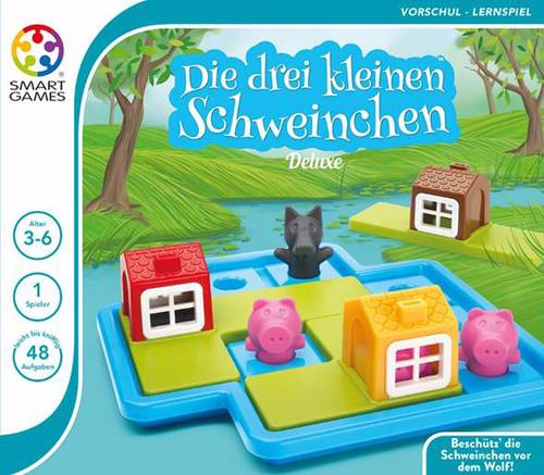 Das Spiel - basierend auf dem gleichnamigen Märchen. Ziel ist es, die Aufgaben durch Setzen der Häuser (Puzzleteile) zu lösen und damit den Schweinchen zu helfen. Lernspiel für einen Spieler. Von 3-6 Jahren.