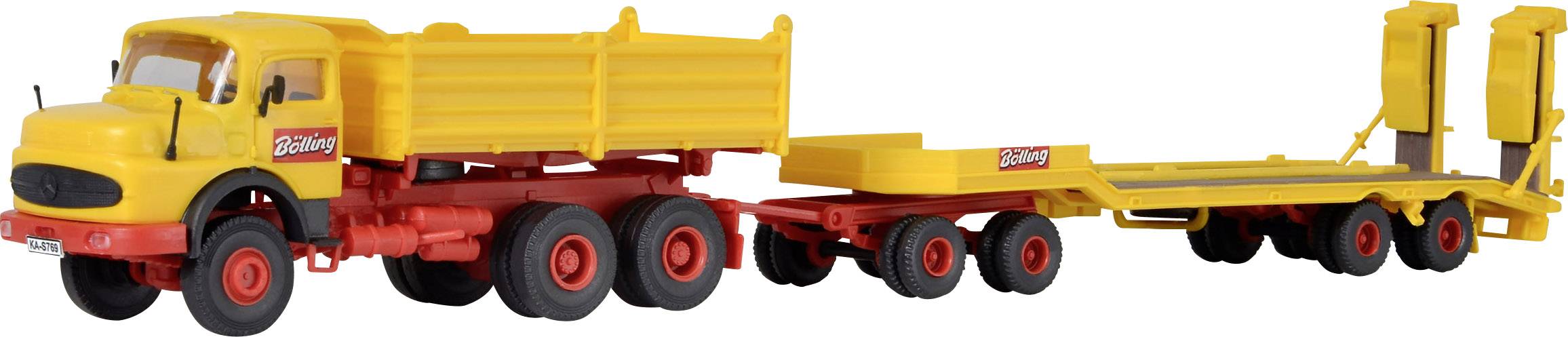 Kibri 14125 H0 Baufahrzeug Modell Mercedes Benz Kurzhauber mit Tiefladeanhänger