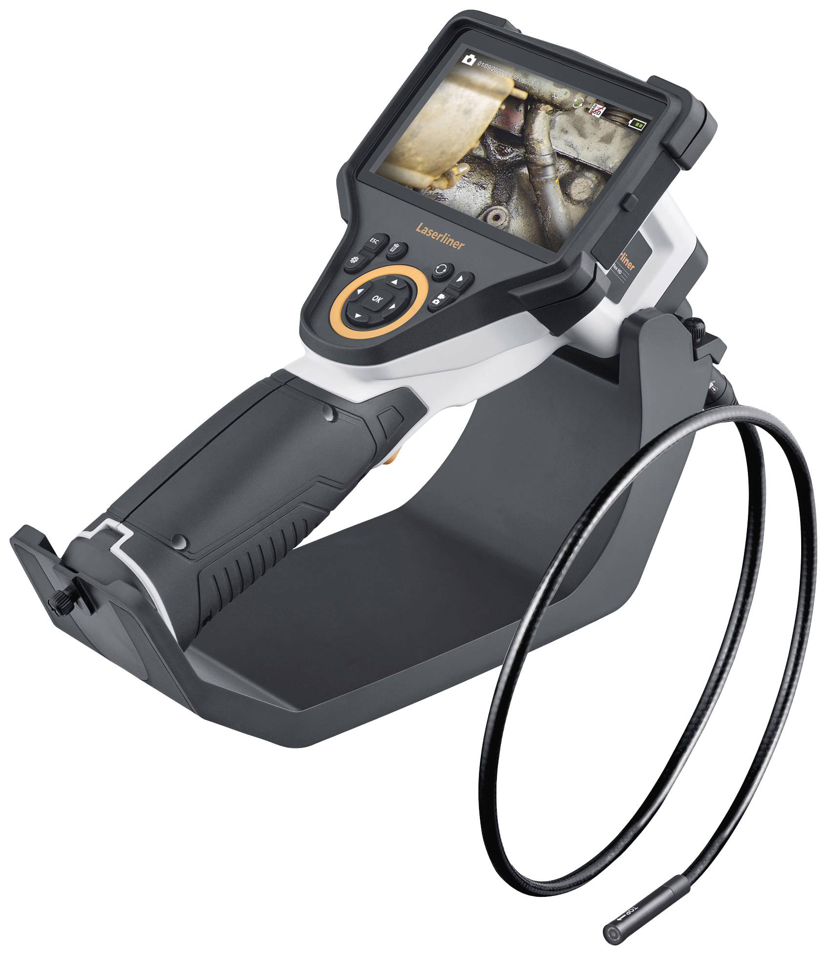 Das professionelle Videoinspektionssystem mit wechselbarer Front- und Seitenansicht ist ideal für genaue visuelle Kontrollen in Rohrleitungen, Wandhohlräumen und Kraftfahrzeugen. Der sehr kleine Kamerakopf eignet sich optimal für schmale Öffnungen, beispielsweise an Motoren, Getrieben oder Karosserien. Die hochauflösende Kamera ermöglicht sehr detailreiche Bild- und Videoaufnahmen mit 1:1-Wiedergabe auf dem Display ohne Qualitätsverlust. Durch den klaren digitalen Zoom lassen sich Details hervorragend erfassen. Weitere Vorteile sind die erstklassige LED-Objektbeleuchtung, optimale Kontrastwiedergabe von Grauabstufungen und der magnetische Ständer. Am benzin- und dieselresistenten Kamerakopf können die Magnet- und Hakenaufsätze zum Anziehen oder Anheben von schwer erreichbaren Gegenständen angebracht werden.