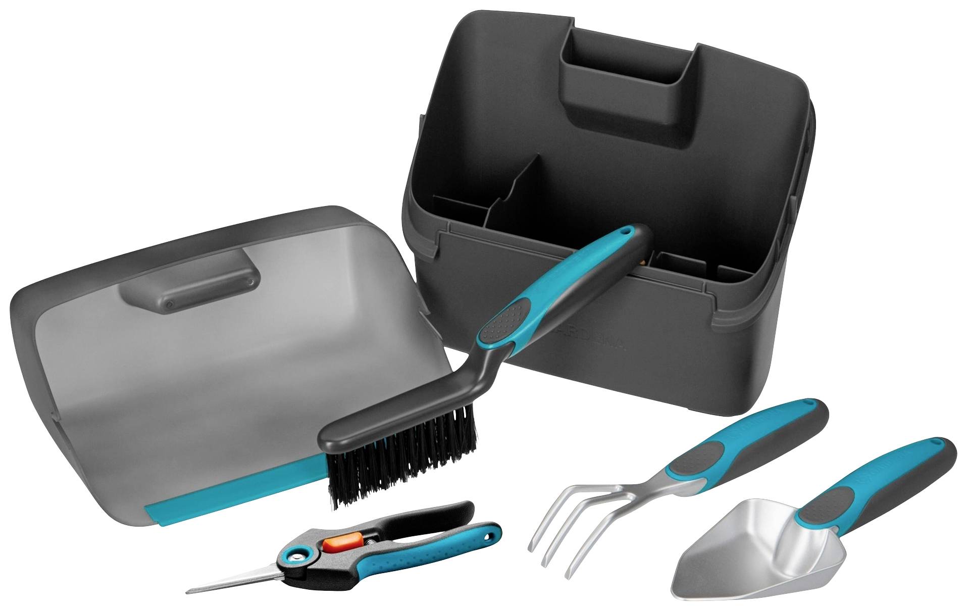 Die GARDENA city gardening Balkon Box beinhaltet vier kleine Gartengeräte, die sich ideal für simple Balkon- und Gartenarbeit eignen. Alles griffbereit zur Pflege und Gestaltung von Balkon- und Terrassengärten. Clevere Aufbewahrung In der geräumigen Balkon Box befindet sich ein Geräte-Set für einfache Gartenarbeiten, das sich besonders gut für die Hauptanwendungen auf Balkon und Terrasse eignet und sich übersichtlich in der Aufbewahrungsbox verstauen lässt. Die Kunststoffbox schützt die beinhalteten Gartenwerkzeuge vor Umwelteinflüssen und kann platzsparend an einer Wand befestigt werden. Vielfältige Einsatzmöglichkeiten Die Handgeräte, die sich in der Box befinden eignen sich nicht nur zum An- und Umpflanzen von Terrassen-, sowie Balkonpflanzen und zum Lockern von Pflanzenerde, sondern auch zum Ernten von Kräutern und Blumen. Der Deckel der Box verfügt über eine Gummilippe und kann so zusätzlich als Kehrschaufel fungieren. So kann mit Hilfe des beigelegten Handbesens der beim Pflanzen und Ernten entstandene Schmutz gleich zusammengefegt und entfernt werden. 4 Tools in einer Box Die verschiedenen Werkzeuge erfüllen unterschiedliche Aufgaben im Umgang mit Balkon- und Terrassenpflanzen. So eignet sich die kleine Pflanzkelle für das Um- und Anpflanzen von Kräutern oder Blumen. Mit dem Grubber lässt sich die Erde auflockern, während die Schere für die Ernte von Balkonkräutern verwendet werden kann. Mit dem Besen und dem Boxdeckel lässt sich überschüssiger Schmutz entfernen.