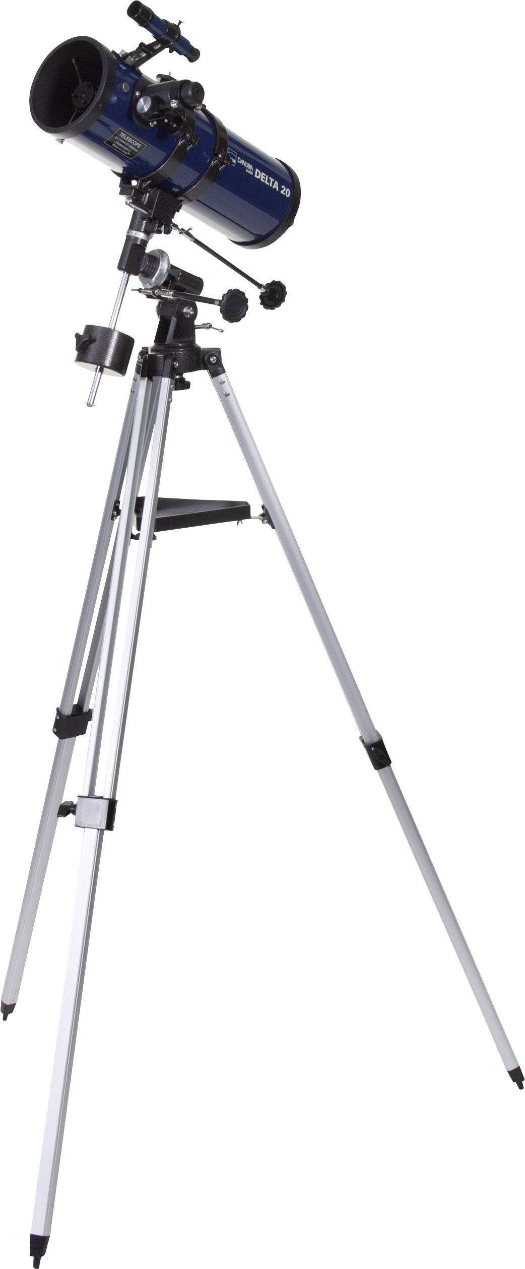 Das extrem kompakte Spiegelteleskop mit großer Brennweite. Ausgestattet mit EQ-1 Äquatorialmontierung, Ausgleichsgewichten und flexiblen Nachführwellen zur Feineinstellung sowie höhenverstellbarem Alustativ.