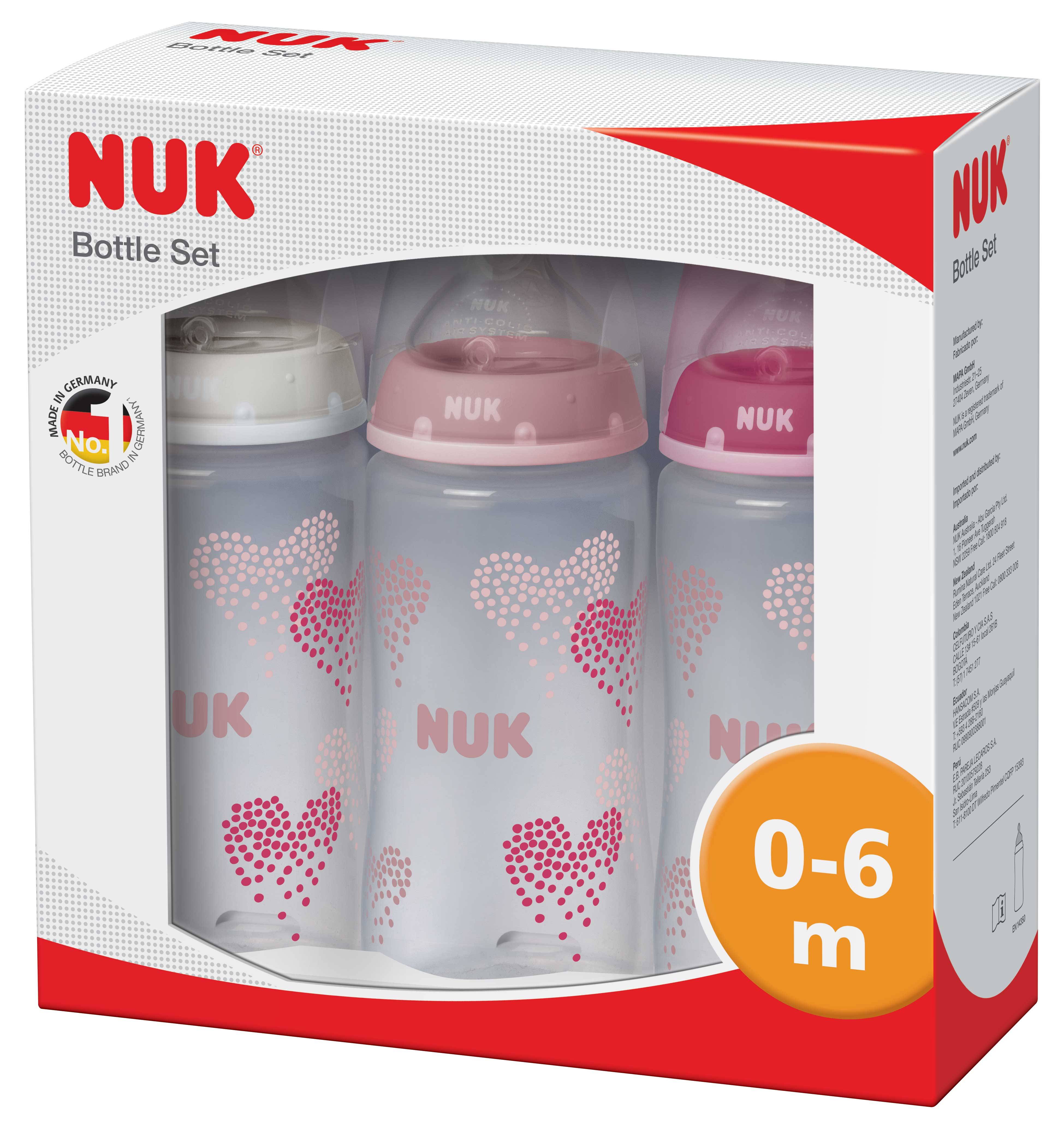 Love is all around you! Mit der limitierten NUK Edition im zarten Rosa und angesagten Herzchen-Look wird jede Mahlzeit zur Liebeserklärung für kleine Mädchen. Für tägliche Abwechslung sorgen drei verschiedenfarbige Schraubringe. Und wenn die Kleinen aus dem Fläschchenalter herauswachsen, wächst die Flasche mit: Sie kann mit allen mit allen Trinkaufsätzen des NUK First Choice Systems kombiniert werden.