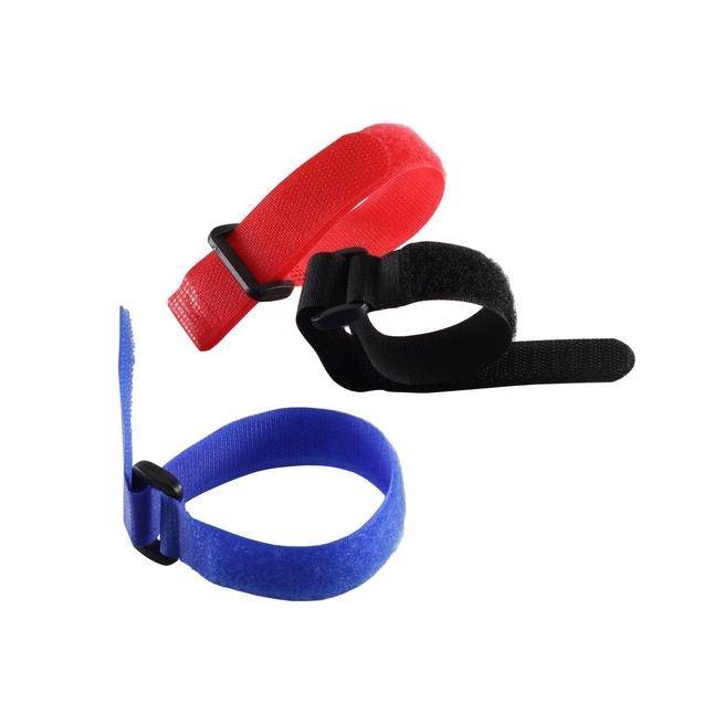 Kabelbinder Klettverschluss mit Schlaufe 250mm, schwarz / blau / rot, 9 Stück