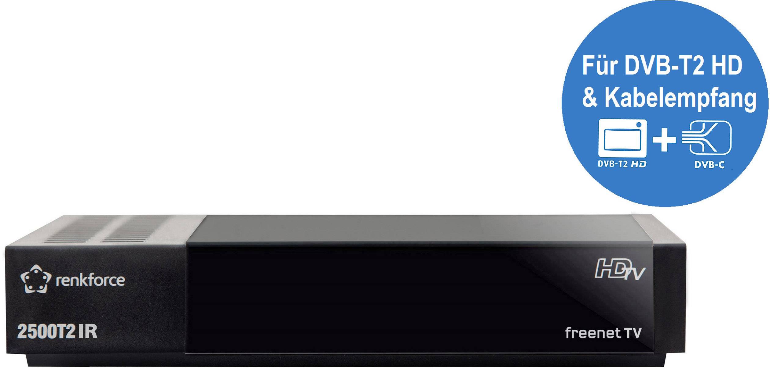 Renkforce 2500T2 HD DVB-T/T2/C Kombo-Receiver Aufnahmefunktion, Deutscher DVB-T2 Standard (H.265)